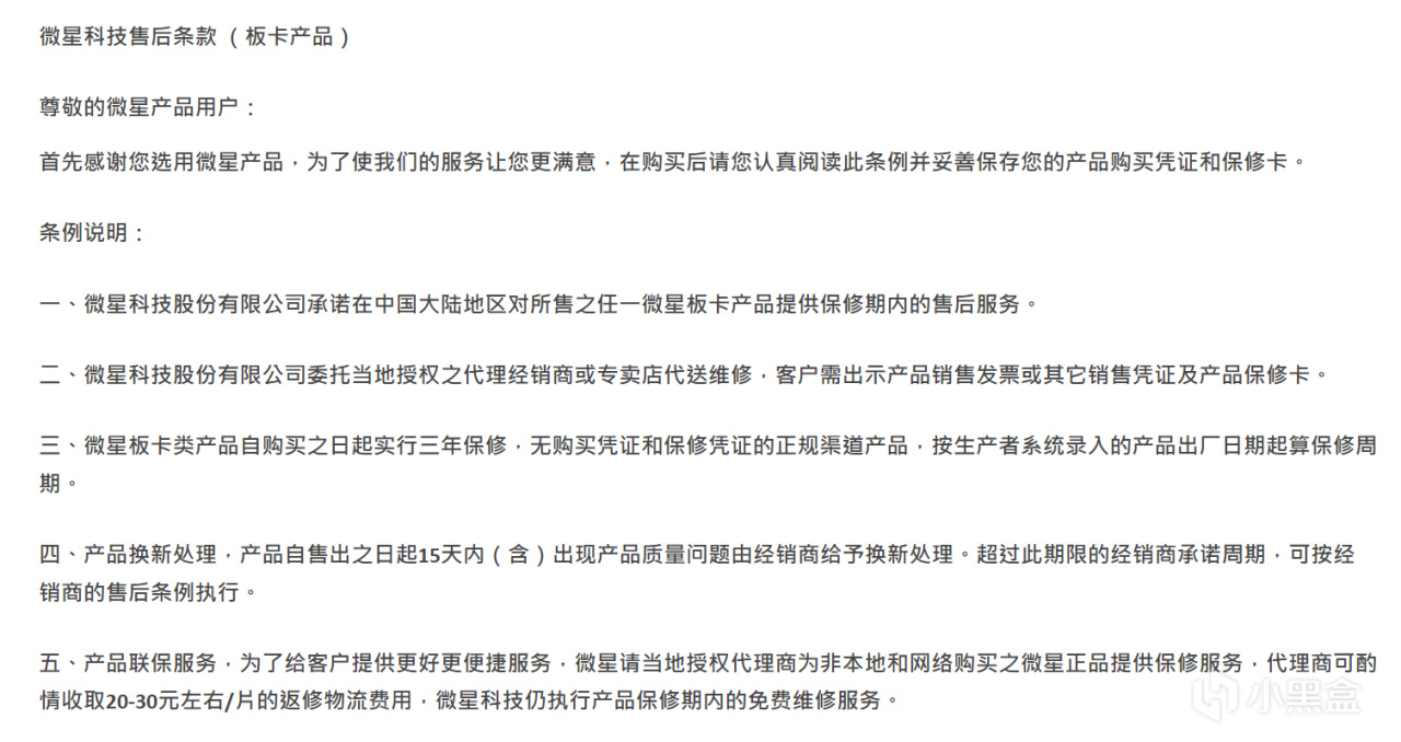 注:微星的任何主板,都不支持個人送保!!!