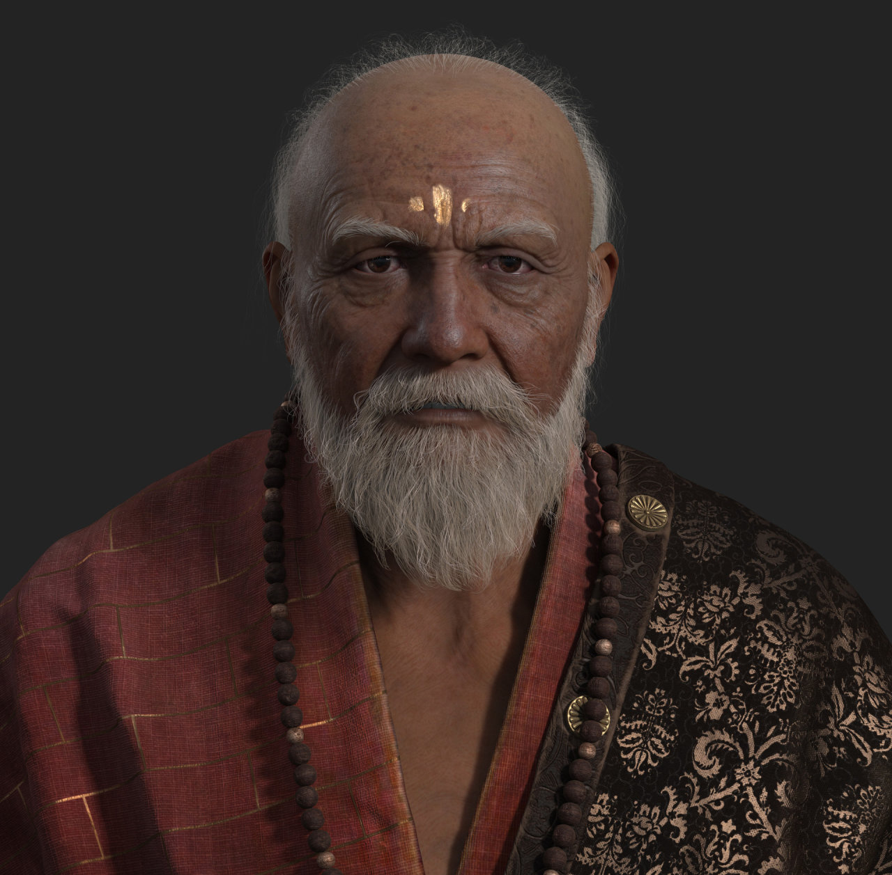 鐵扇公主頭部製作,面部模型基於掃描。