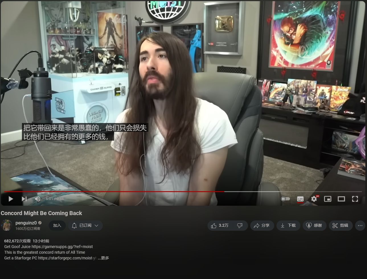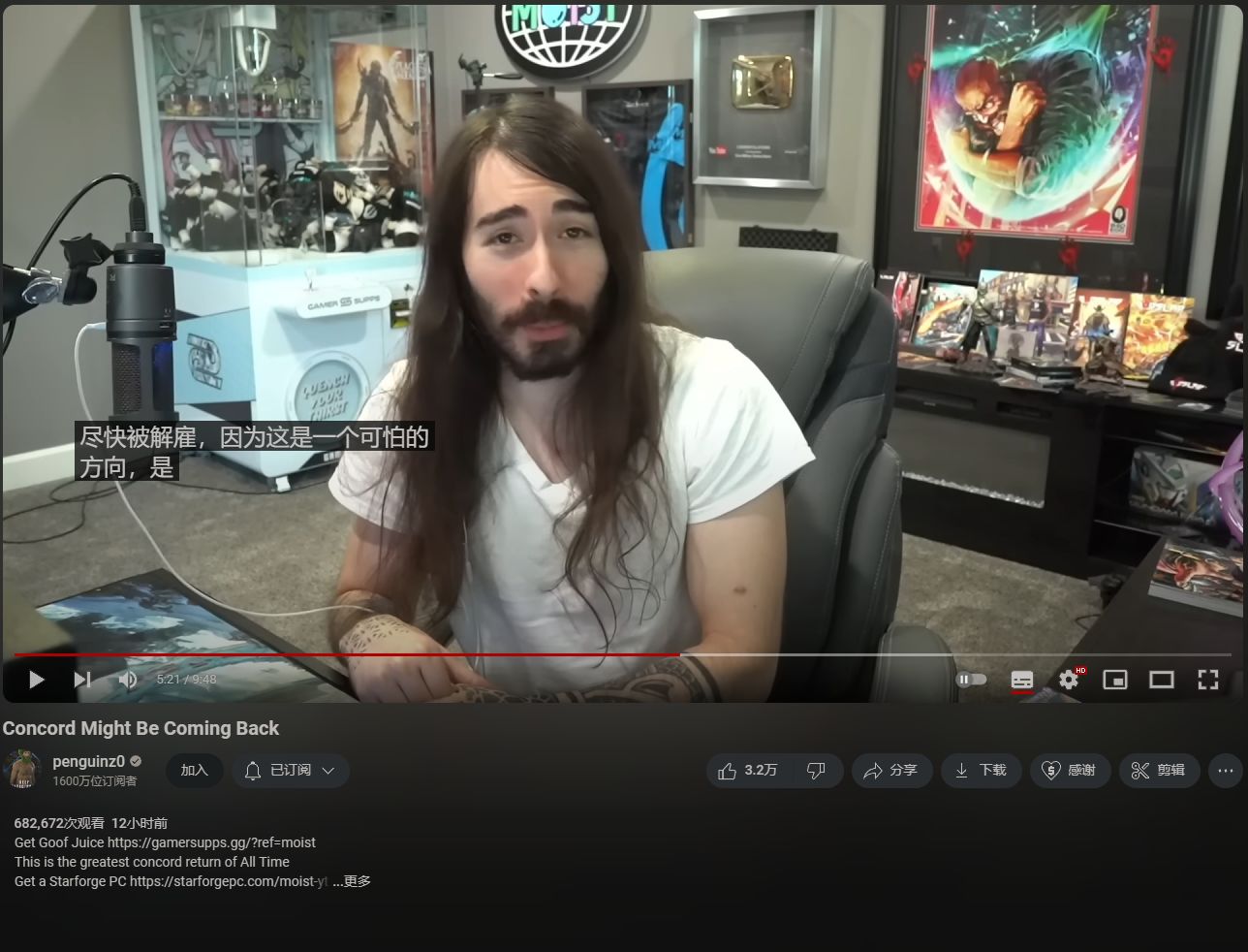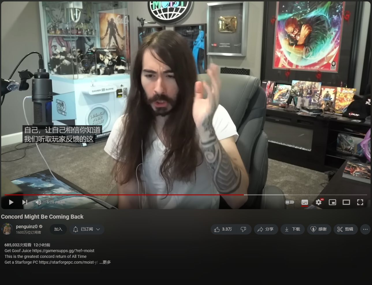 “penguinz0”油管最新视频【Concord Might Be Coming Back】里再次讲述了对此游戏的所有看法!并且表示无人在意你的回归。(指“星鸣特工”Concord)