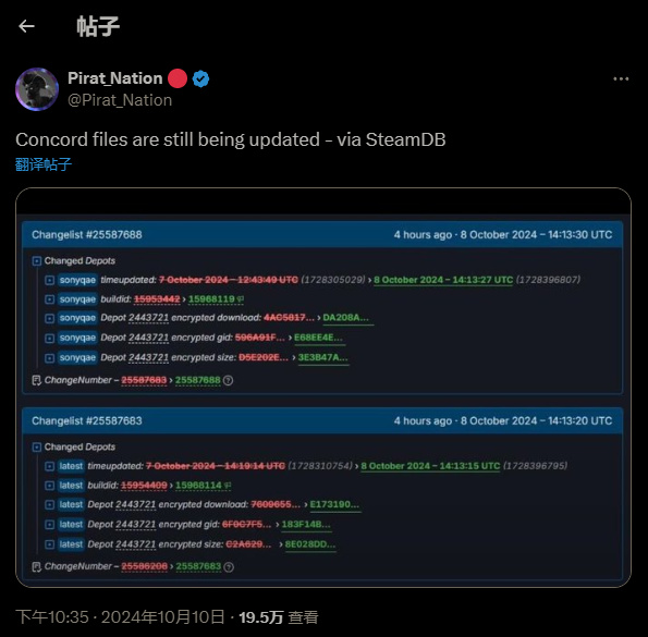 但人们注意到“Concord”正在获得Steam更新,离线了一个多月,现在几乎每天都有“Concord”的更新。