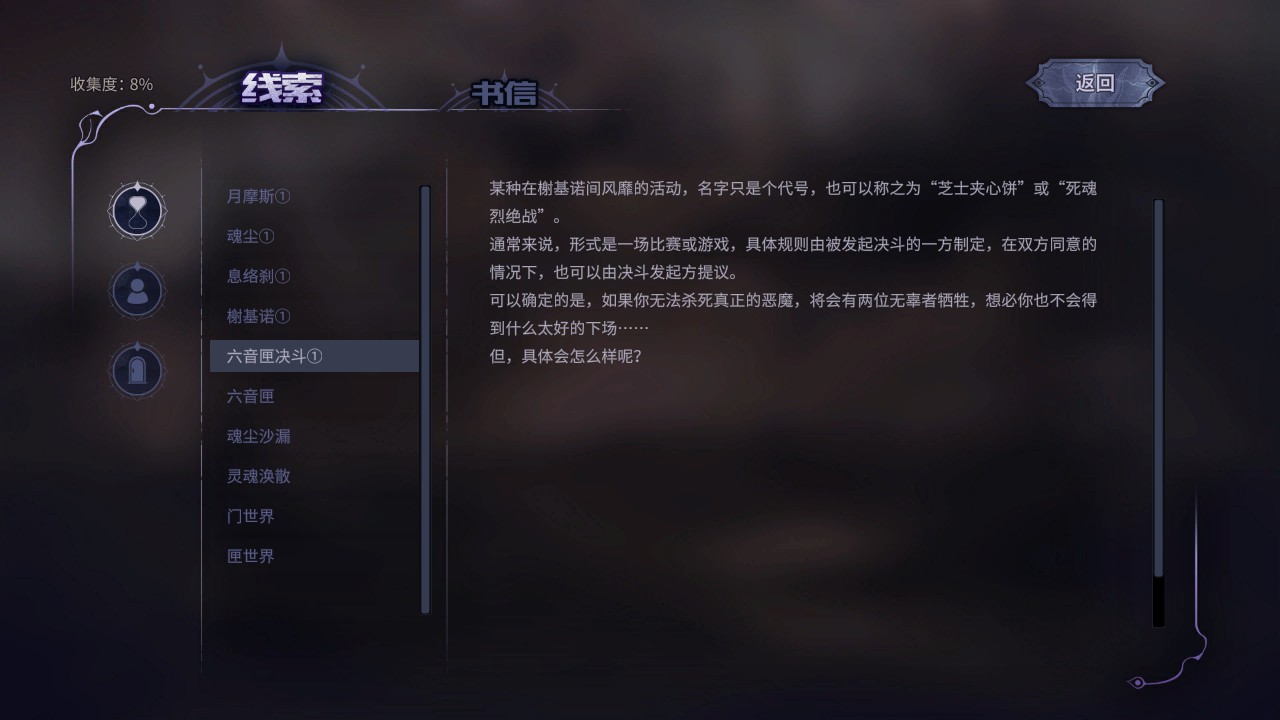 線索和書信是解釋術語和遊戲規則的。便於更好了解這個世界觀,我感覺挺有意思。