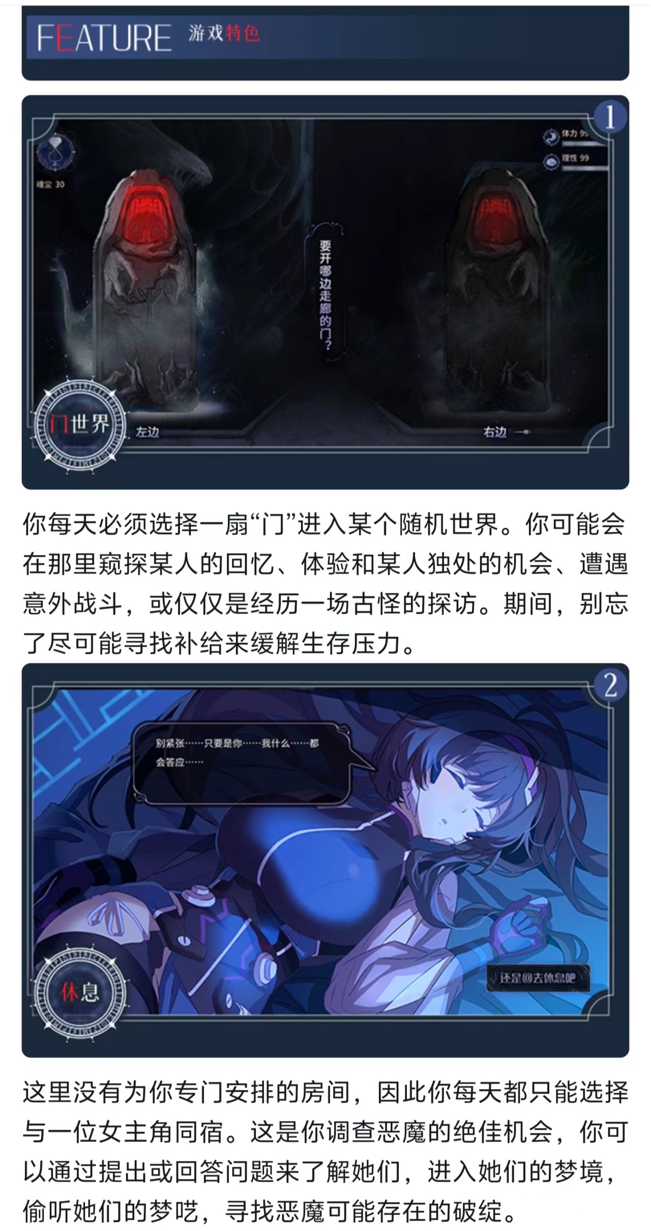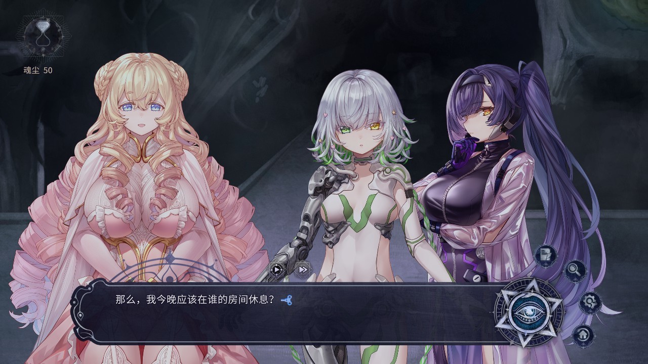 三是門的選擇,貌似真的隨機,每次選左右都不太一樣,但如果想快速瞭解一個女主的信息,晚上選的留宿對象,可以根據白天選到誰的劇情來決定。