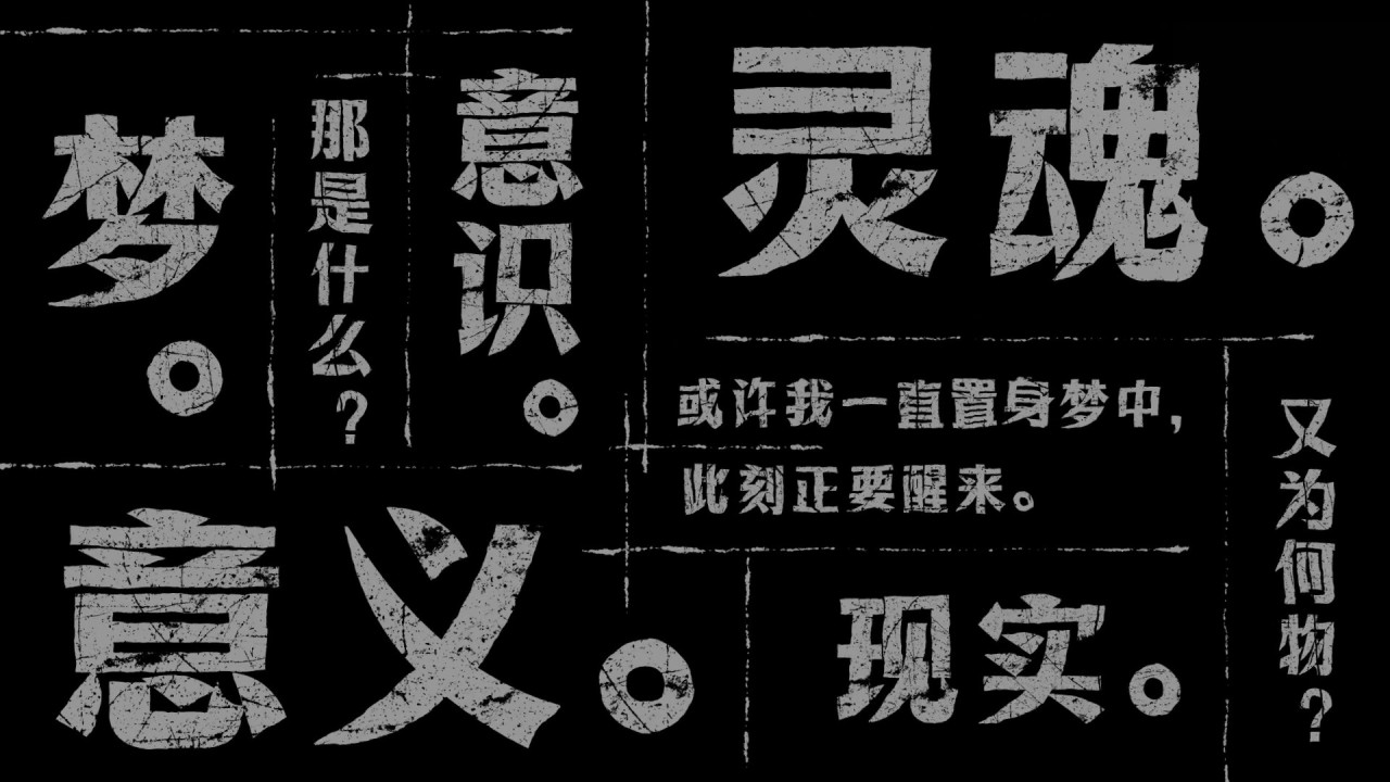 開頭的謎語人文字演出,搭配的零散音效,據說是完整的配樂,有一些涵義指向。