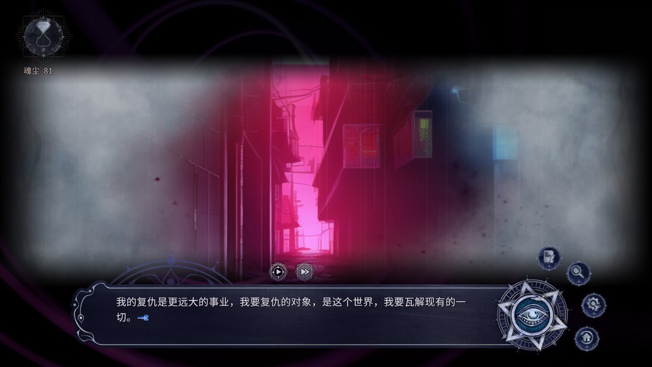 玩到這裏,大概一小時,感覺內容量還是很大的,主要是故事設定很吸引我。