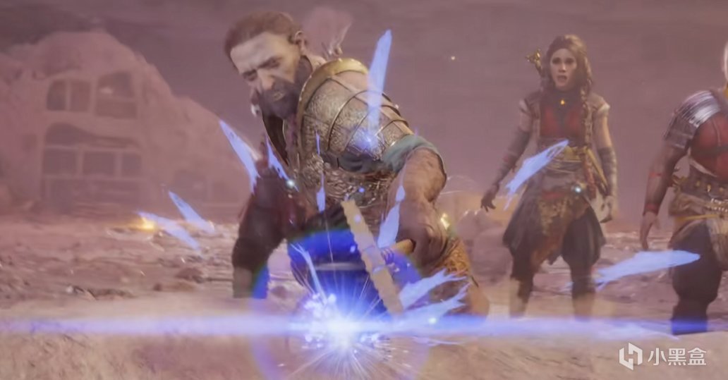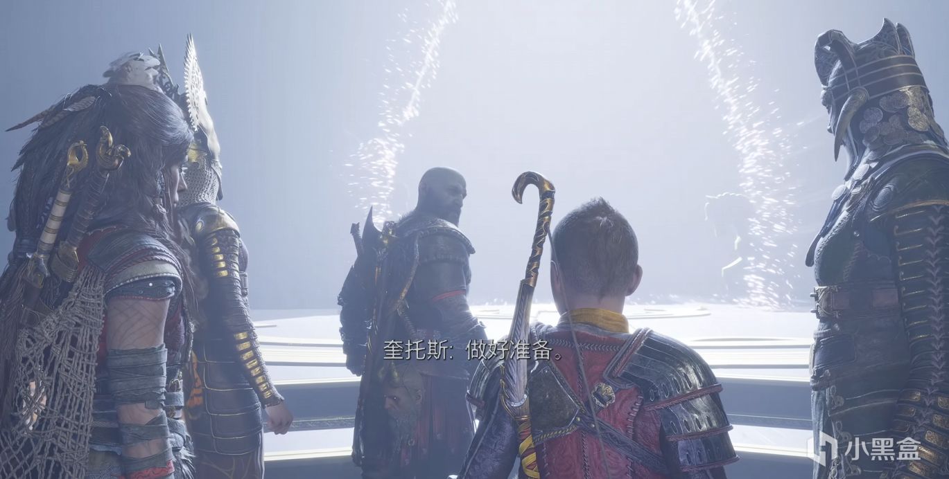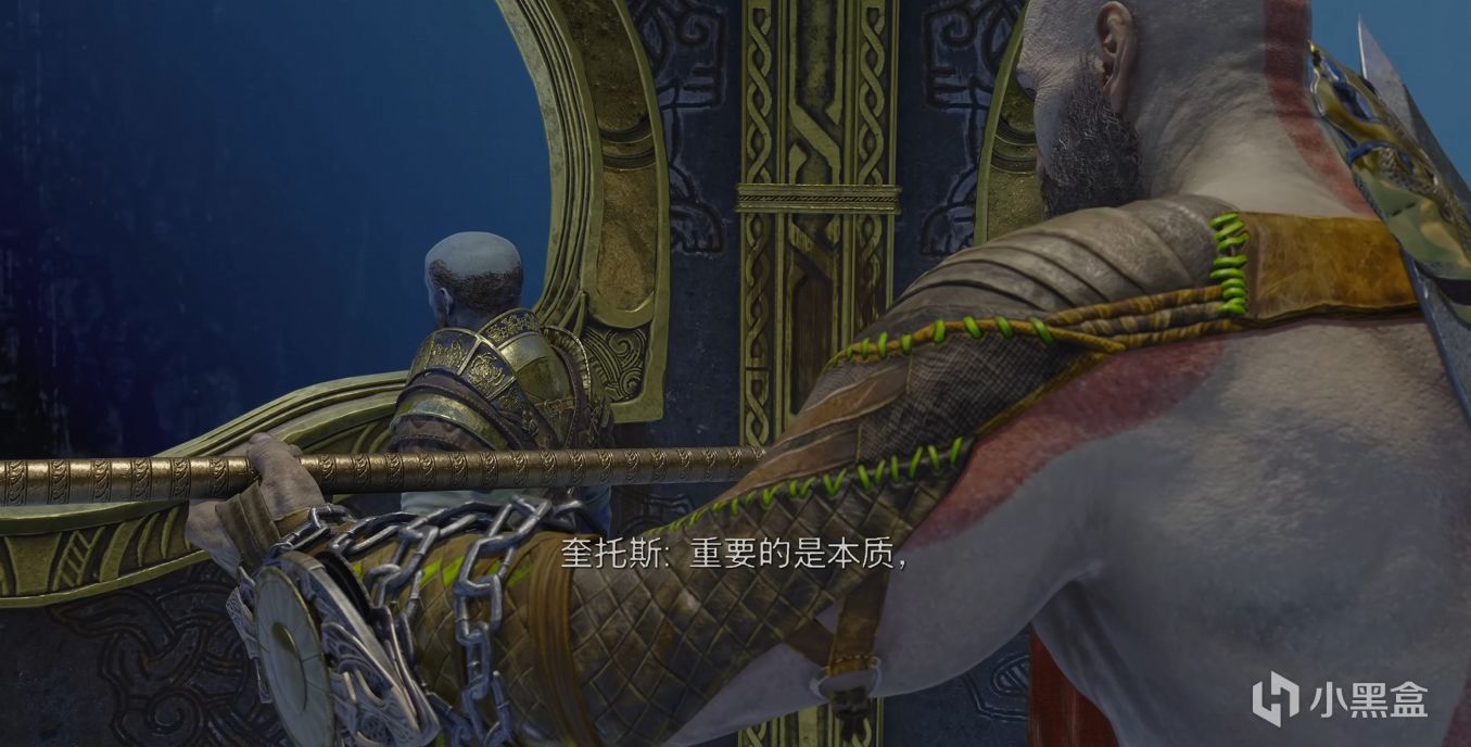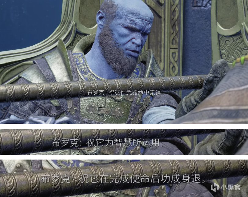 奎託斯單膝下跪雙手平舉請布羅克對長矛的進行賜福,這段劇情真的看得人雞皮疙瘩都起來了,這是誰——人擋殺人佛擋殺佛的戰神奎託斯!