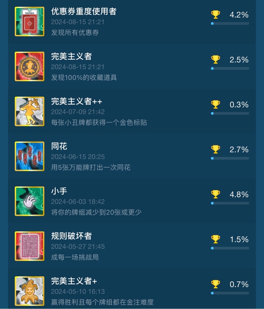 按照成就完成率由高到低排序