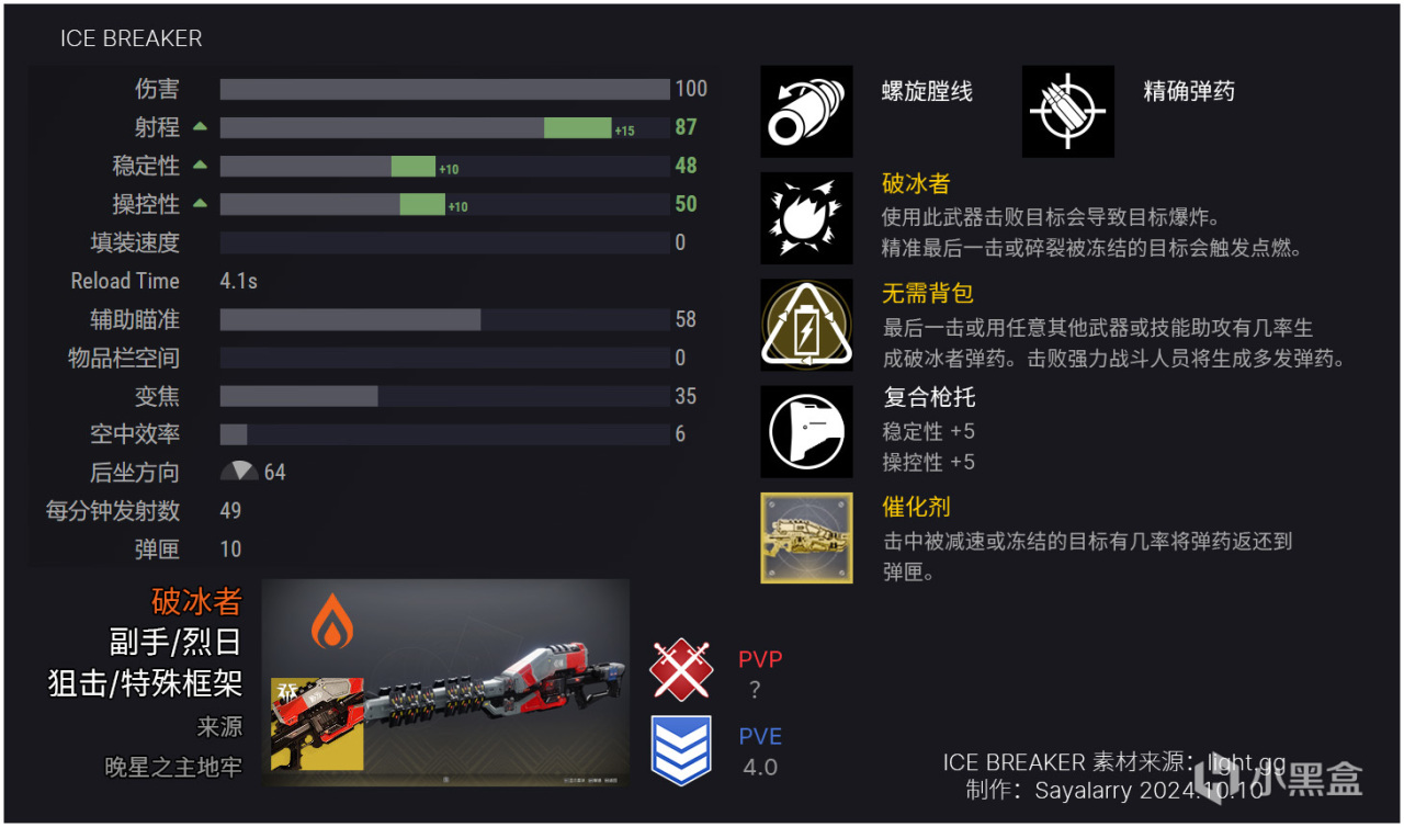 • PVE:切槍輸出組合→嫉妒軍械庫+誘導推銷(按老眼光來看,框架可能拉了點,不過這個賽季增加了榴彈的直擊傷害,需要進一步測試),其他組合爆破/級聯點+爆炸光能/身陷重圍(特殊場合)
