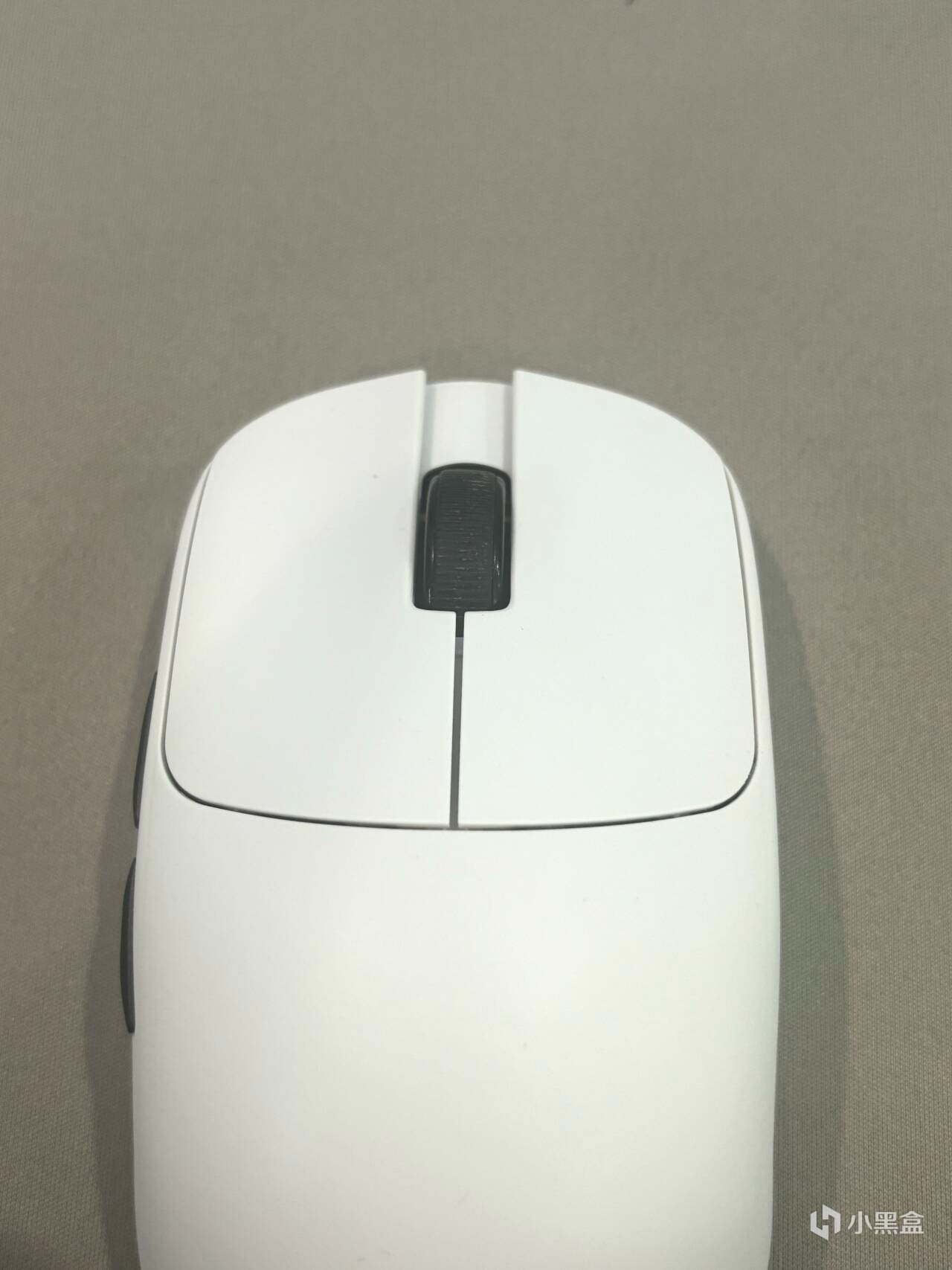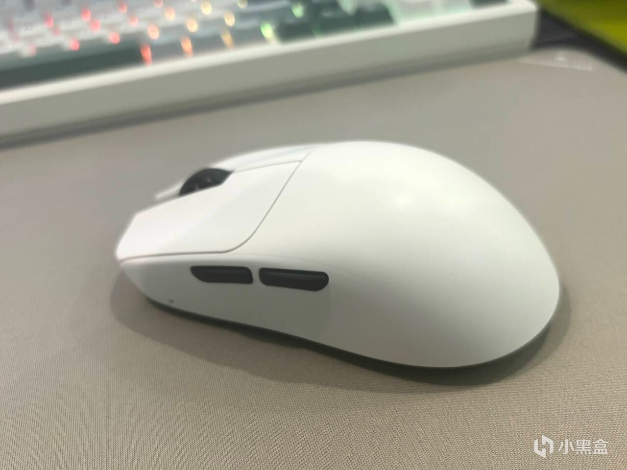 我的這款是白色的鼠標,整體是一個純色的基調,搭配上側鍵和滾輪的黑色,形成了一個黑白撞色的感覺,還是非常不錯的,側鍵使用了分離式的設計,也很大程度上避免了串鍵,在鼠標的右前方,則具體標註了鼠標的型號。