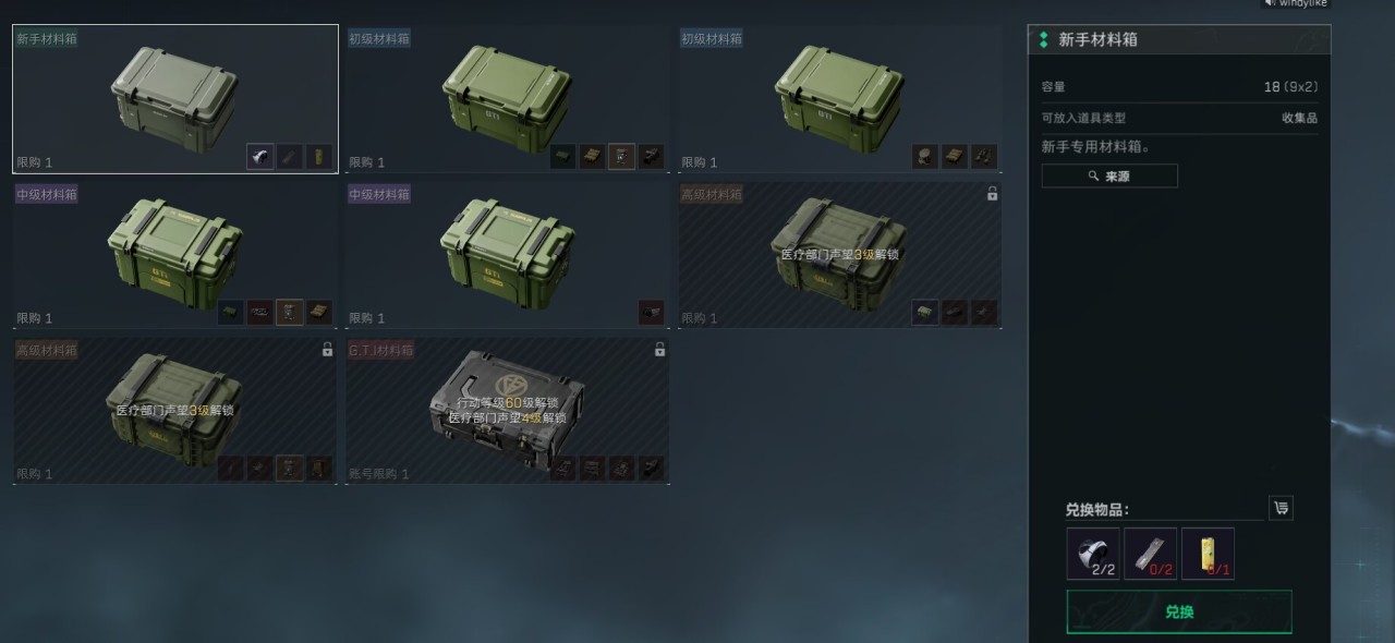 仓库升级后会增加空间和扩展栏位,那是用来放军需处兑换的箱子的,新手整个材料箱和子弹箱就够了,医疗箱因为任务会发让你买医疗箱的任务,你要是想装两个也可以先买,因为一个箱子也不大便宜,尤其是金和红色品质道具一直涨价,所以还是酌情考虑,藏品箱档案箱什么的都没必要做,注意箱子名字决定了能放进去的道具类型,其他类型道具不能放进去的。
