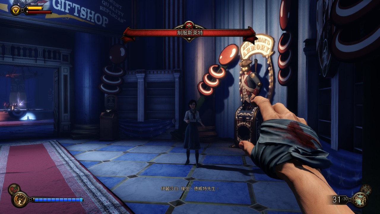 先說說大致劇情:失意偵探布克欠了一屁股債務,這次他接到了一個委託,讓他前往哥倫比亞帶走一個女孩伊麗莎白,委託成功那債務一筆勾銷。布克抵達天空之城哥倫比亞後,發現這裏一直充斥着一股異樣感,而且某幾處都有標語寫着:邪惡的牧羊人會帶走我們的羔羊,我們需要剷除牧羊人。而牧羊人的標誌就是手上刻着A.D.,而布克手上就刻着A.D.。經過一番折騰後,布克成功找到了伊麗莎白,而伊麗莎白卻有着打通各個平行世界的能力。而幕後反派康姆斯托克也在千方百計阻止他們逃離哥倫比亞。