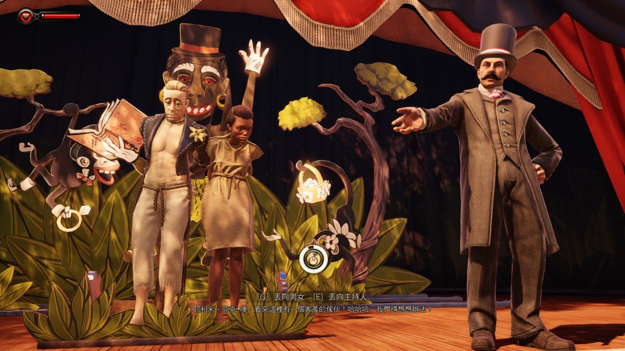 而在遊戲中沒逛多久,就會發現哥倫比亞的異樣感,各種標語,裝飾物,遊樂場所都有着明顯的個人傾向性,所有的裝飾物似乎都在潛移默化的告訴大家“城市建造者康姆斯托克是我們的神”,而康姆斯托克的個人理念也在城市裏不斷擴散,比如開局就讓玩家進行“砸球”抉擇就完美展現了城市的病態一面以及最終反派康姆斯托克的個人主旨。