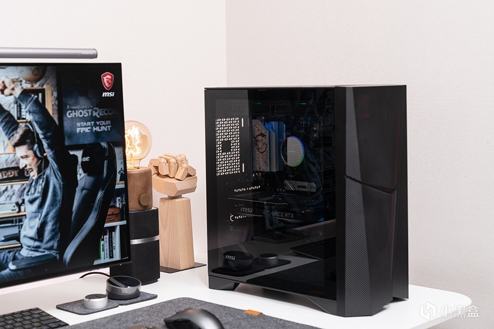 採用單邊側透的設計方案,左側爲透明鋼化玻璃,可以更好的展示內部硬件及燈效,燈效在常亮光環境下燈朦朧低調,在黑暗環境下絢麗多姿,可以很好融入桌搭氛圍。