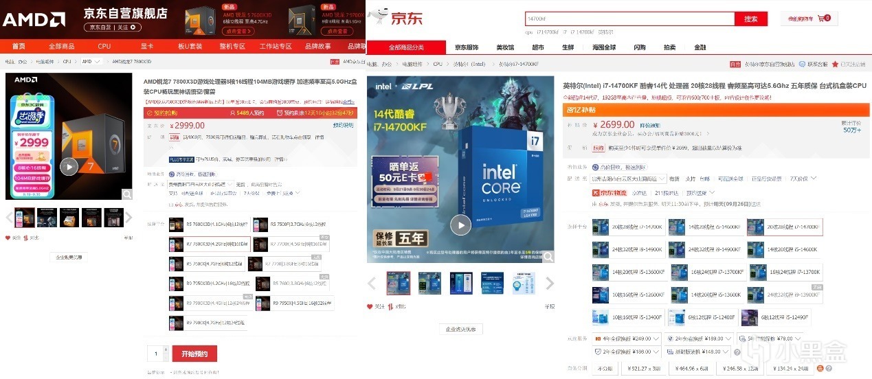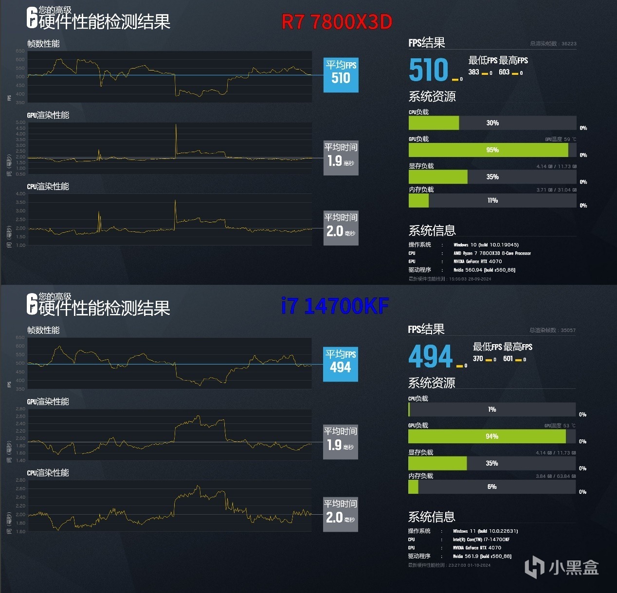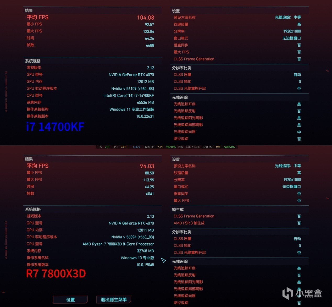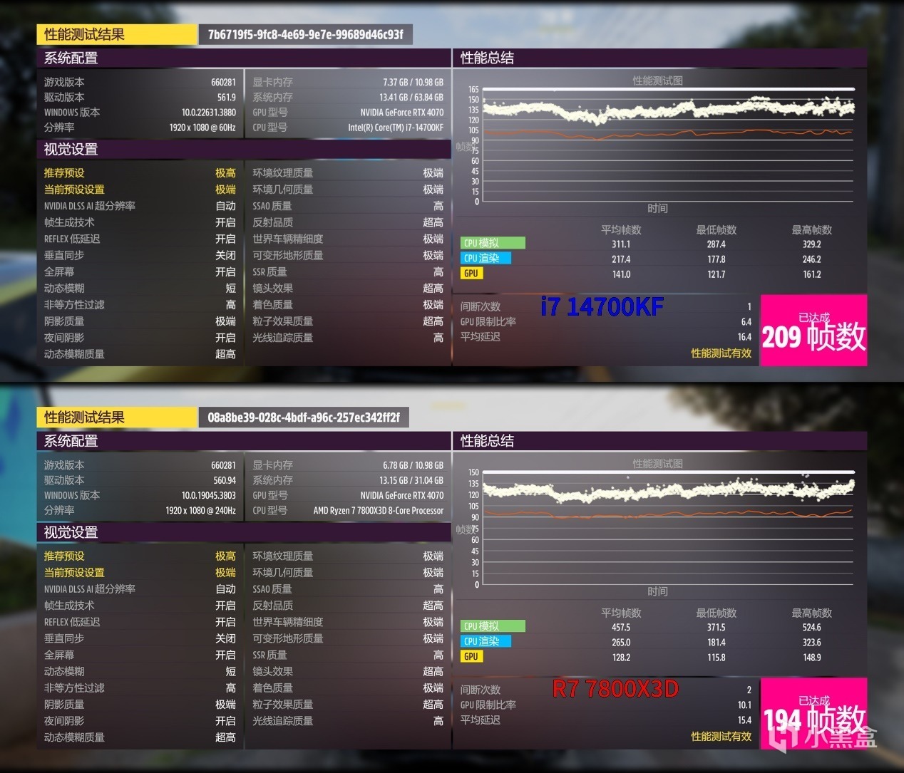 AMD-7800X3D與intel-14700KF的遊戲性能差別。