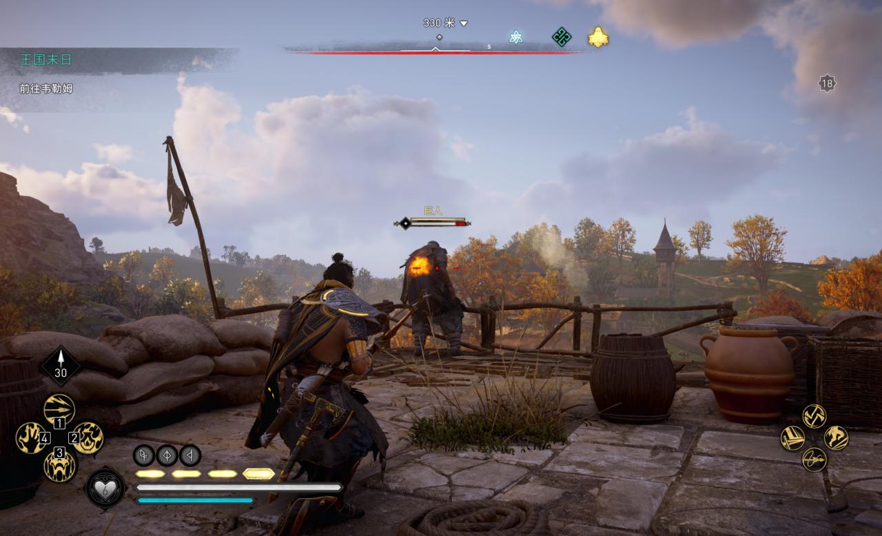 地图中的其他巨人也可以完成这个成就,但容易被丢到墙上导致不够30米,这个应该是距离我们营地最近且容易操作的一个位置了