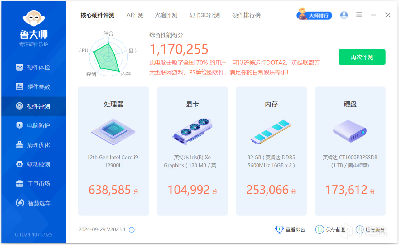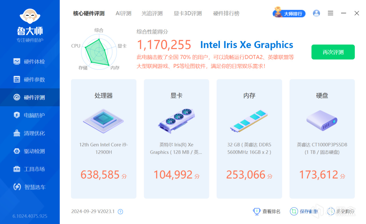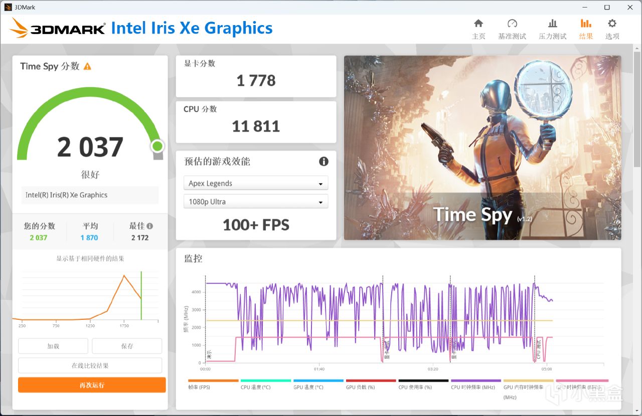 显卡性能测试软件的结果可以客观反映出Intel Iris Xe Graphics与索泰RTX 4070之间的差距大概有多少。