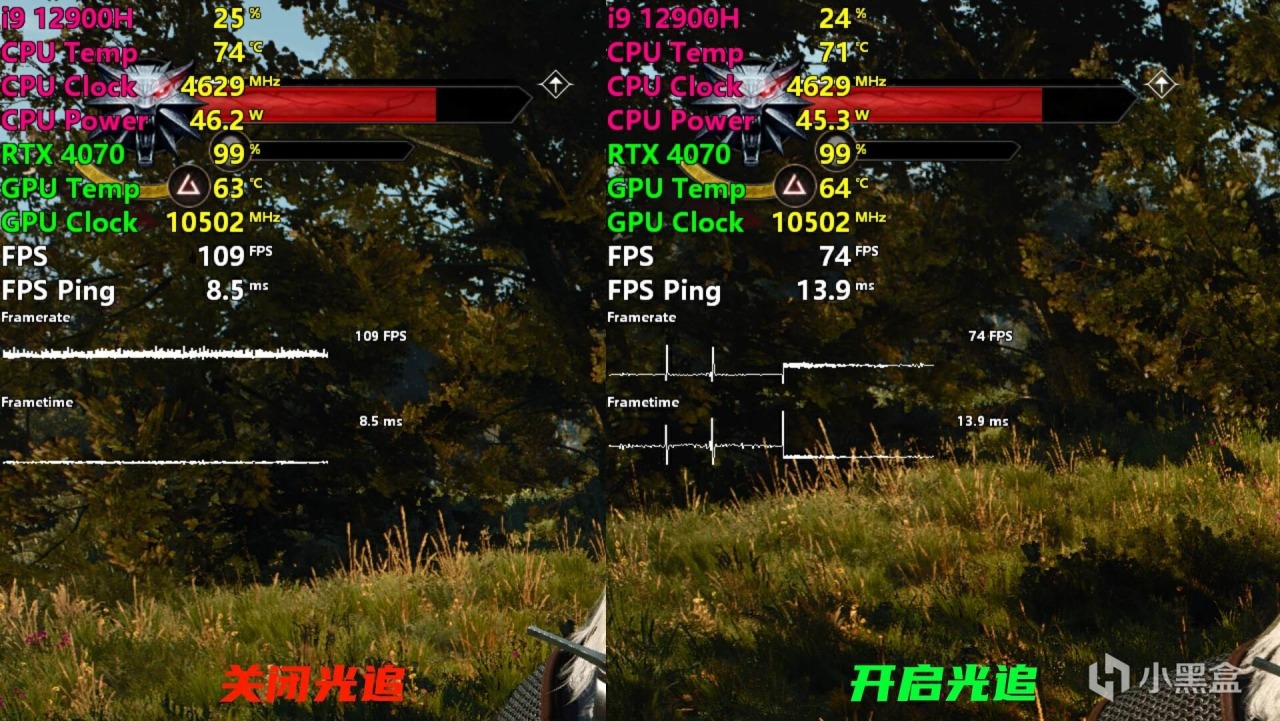 4K分辨率超高画质,关闭光追游戏内帧数100+,开启光追游戏内帧数70+。