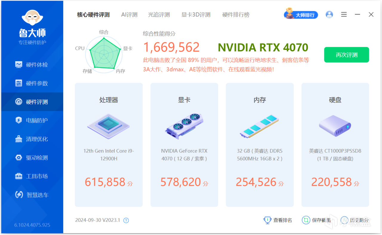 索泰RTX 4070显卡分数578620,比Intel Iris Xe Graphics提升了约451%