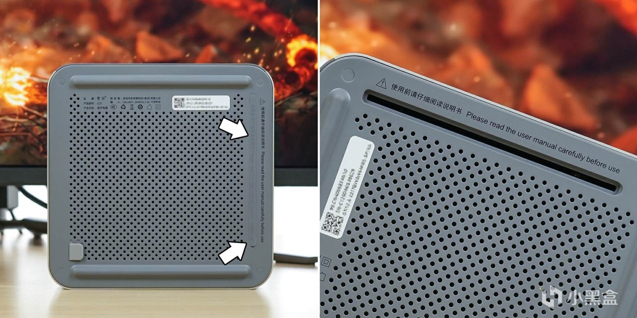 机身底部采用硬塑料+防滑软塑胶材质,一整面的蜂窝状散热孔,配合MSC 2.0散热系统,散热性能可见一斑。