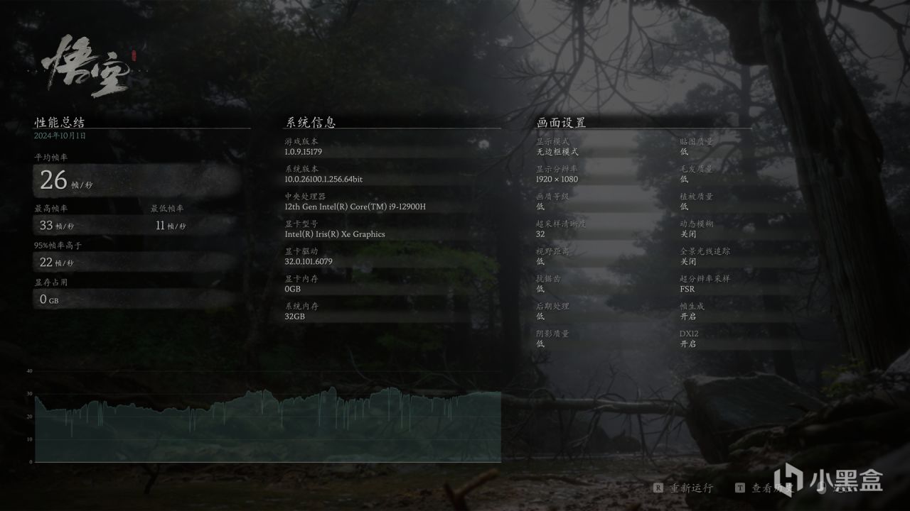 我用零刻GTi12 Ultrra跑了一遍《黑神话:悟空》测试工具,1080P分辨率+全低画质+DLSS极致性能+开启帧生成+关闭光追,平均帧数只有26,进游戏后画面卡顿就像播放PPT,谈何游戏体验?!