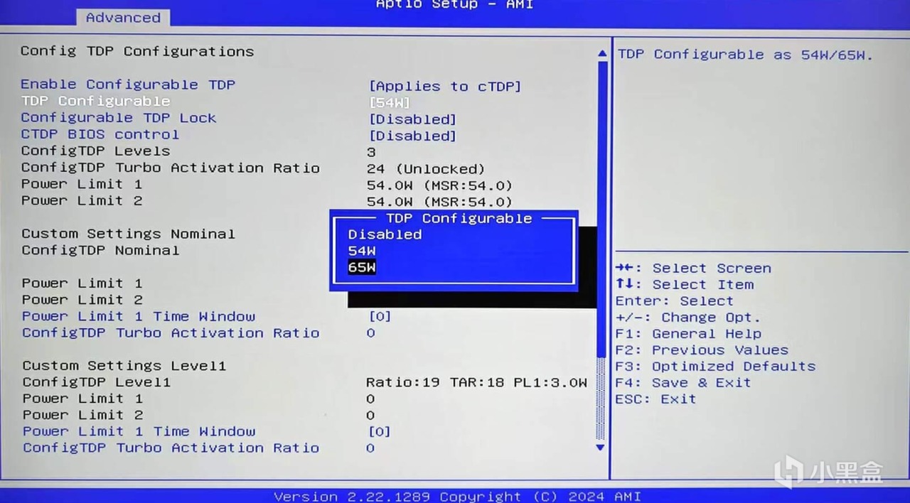 CPU默认TDP 54W,我们可以再BIOS里切换至TDP 65W,从而释放整机性能。