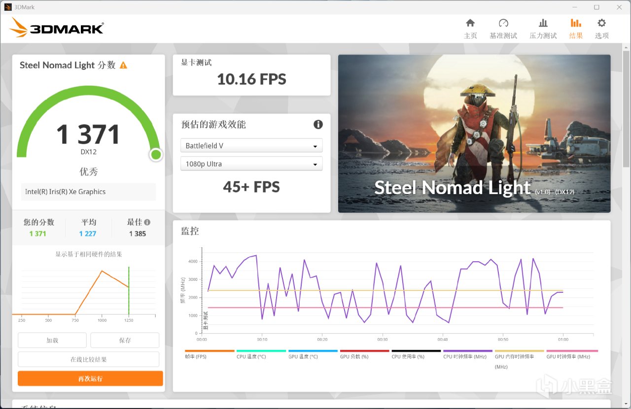 3DMark推出了一个跨平台、非光线追踪的基准测试项目:Steel Nomad Light,适用轻型电脑的显卡性能测试,零刻GTi12 Ultrra的集显测试结果1371分。