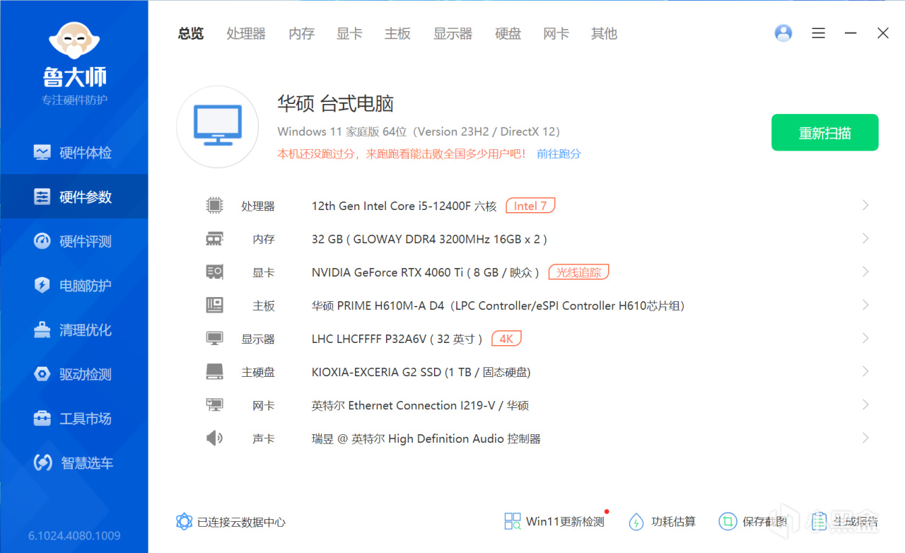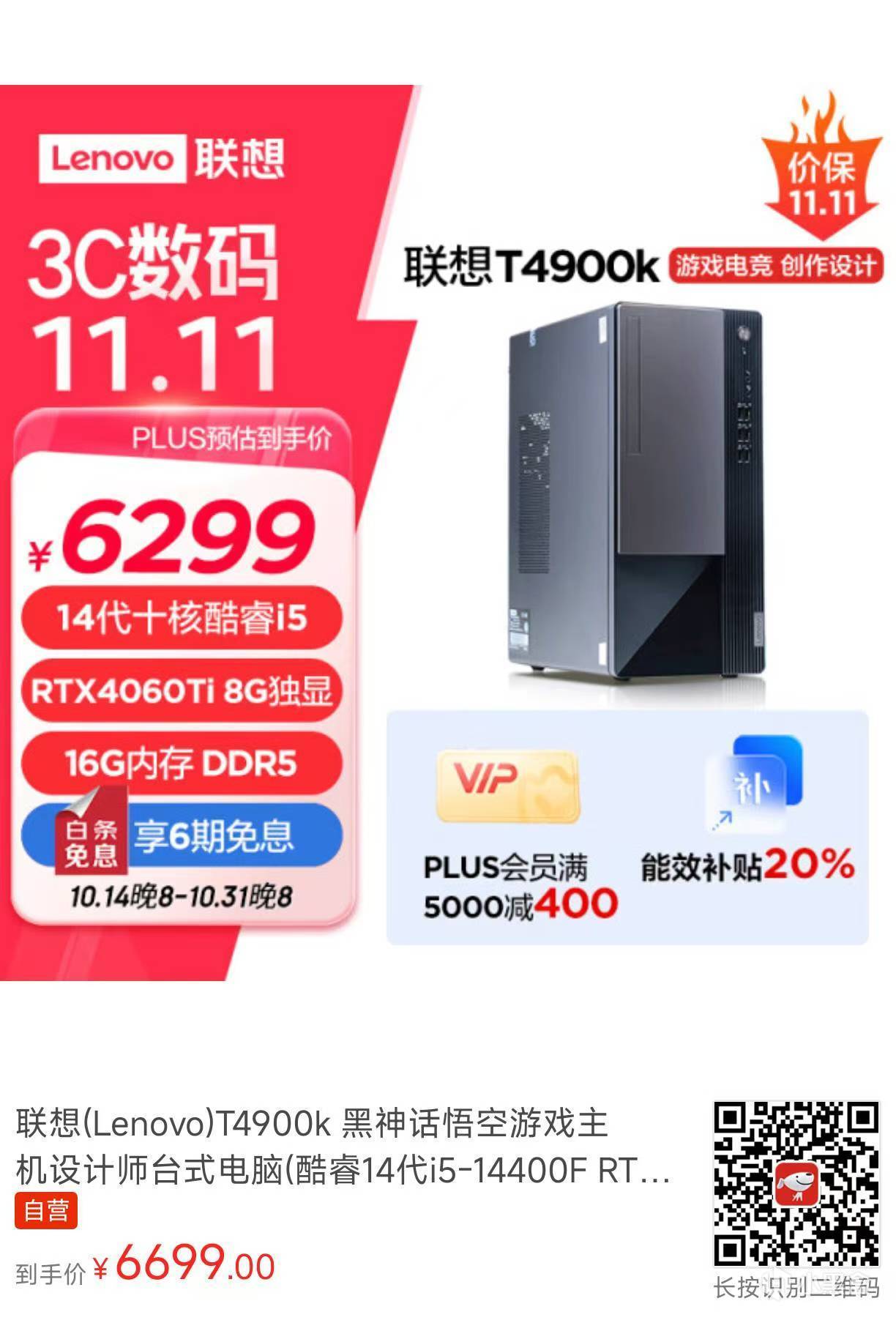 不過我的評價是不如品牌機,聯想14400F(12600KF)+4060Ti現在京東自營6699 PLUS滿5000-400再用3000-150的券和政府20%家電補貼入手只要4700多,比自己DIY划算便宜太多了。。。