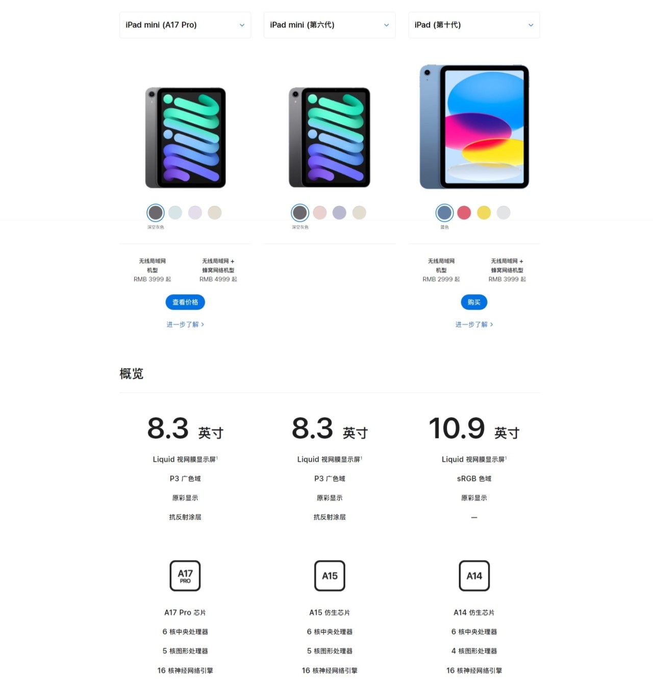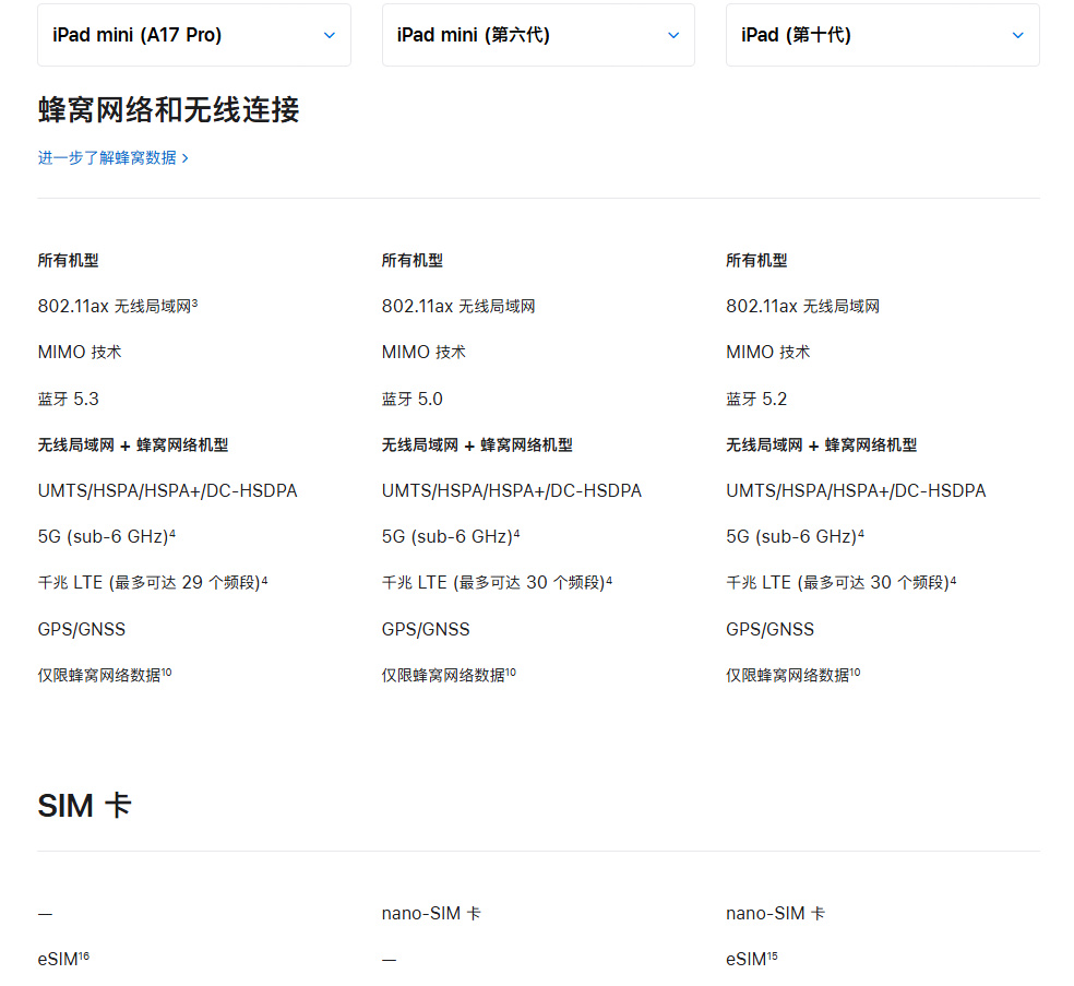 8.3英寸屏,参数对比上代没变,新增支持Apple Pencil Pro。