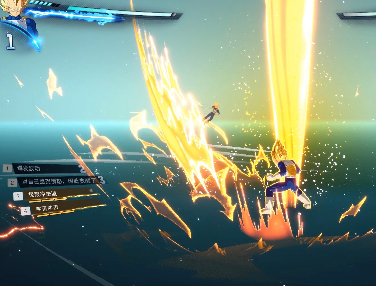 然后就是重复操作,这时候特兰克斯也要变身了,变身也是这样打或者像悟空篇打扎黑、吉连那样。变身前最好控制在1:00或者1:30内,给变身后留有充足时间,总时间差不多不超过2:30就行。要是满足if线贝吉塔就会说:我不晓得你在想什么......不过,你居然敢用这种变身跟我战斗.......。要是时间超了,贝吉塔会说我还是不太行吗?这样类似的话