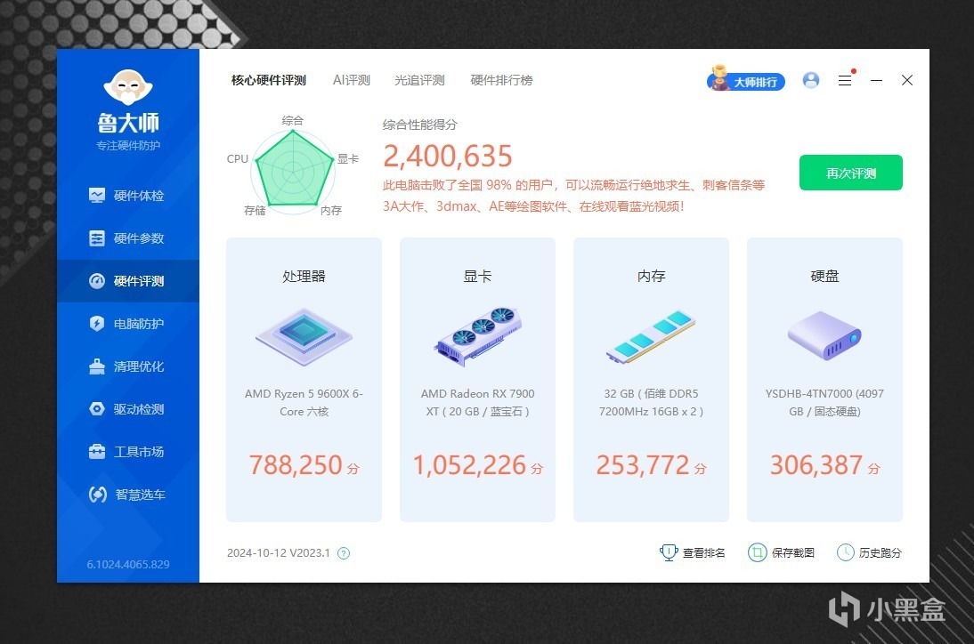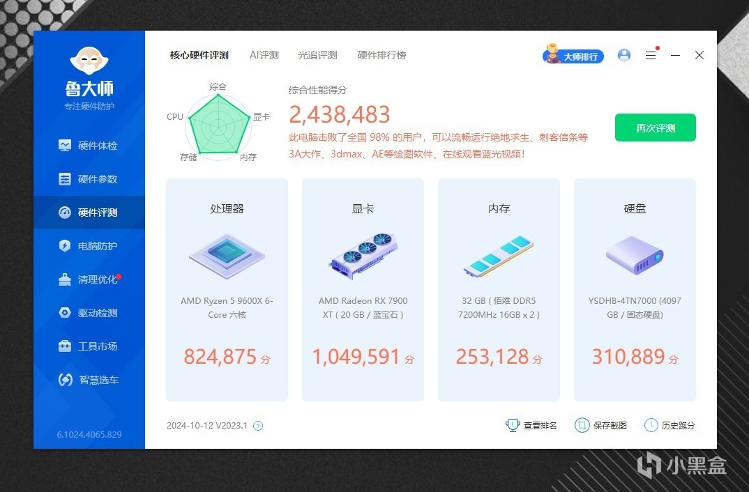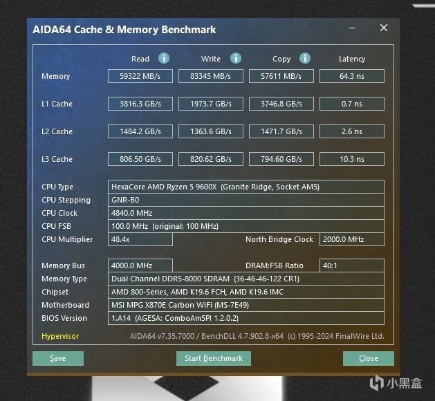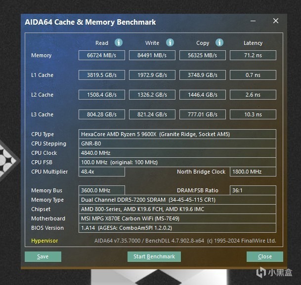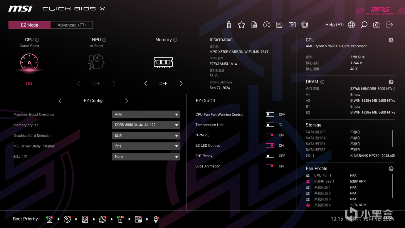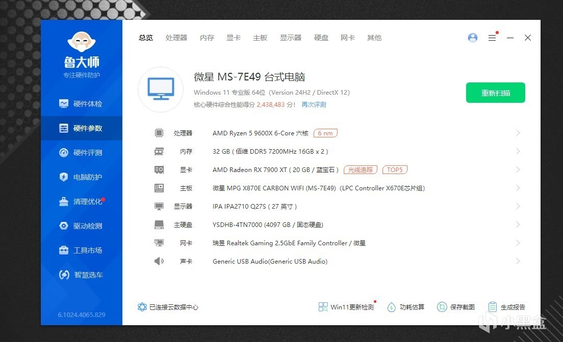 不好意思,忘记介绍下系统配置了,CPU是AMD 9600X,内存是佰维DDDR5 7200MHz,显卡是蓝宝石7900XT,主板不用说了,是微星MPG X870E CARBON WIFI。