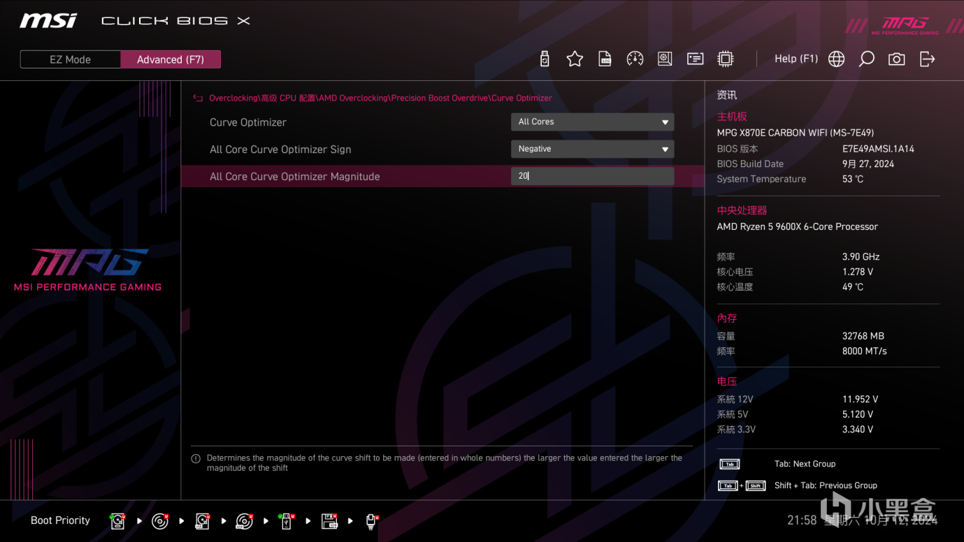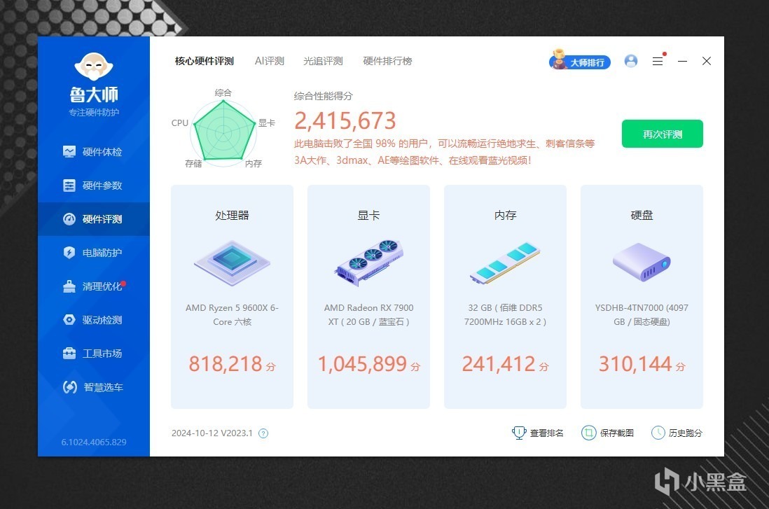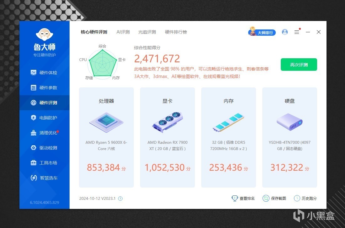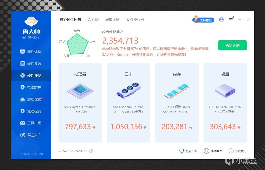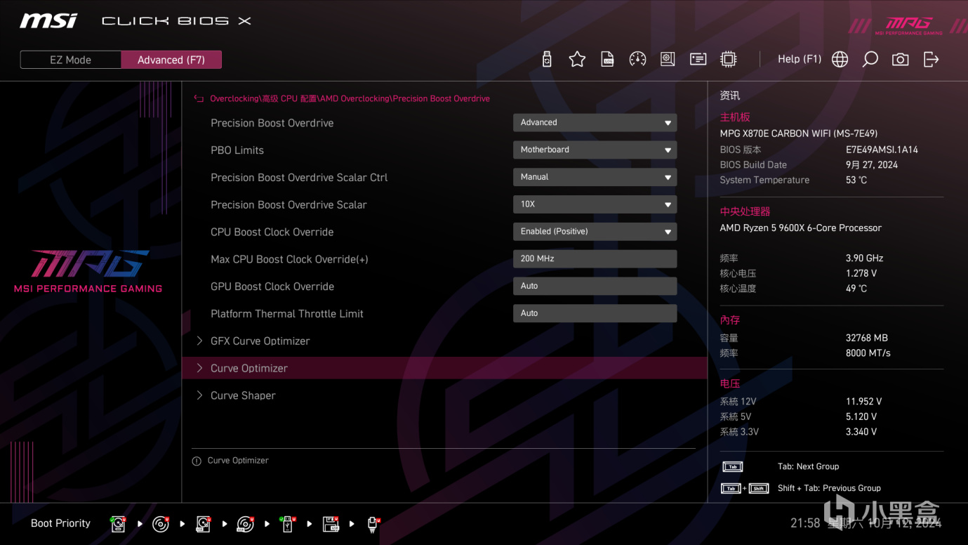 不好意思,忘记介绍下系统配置了,CPU是AMD 9600X,内存是佰维DDDR5 7200MHz,显卡是蓝宝石7900XT,主板不用说了,是微星MPG X870E CARBON WIFI。
