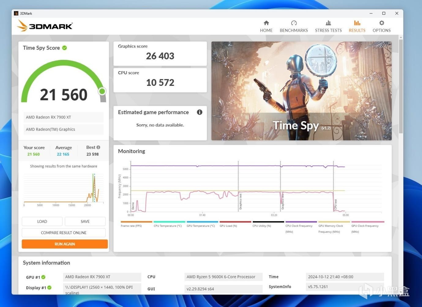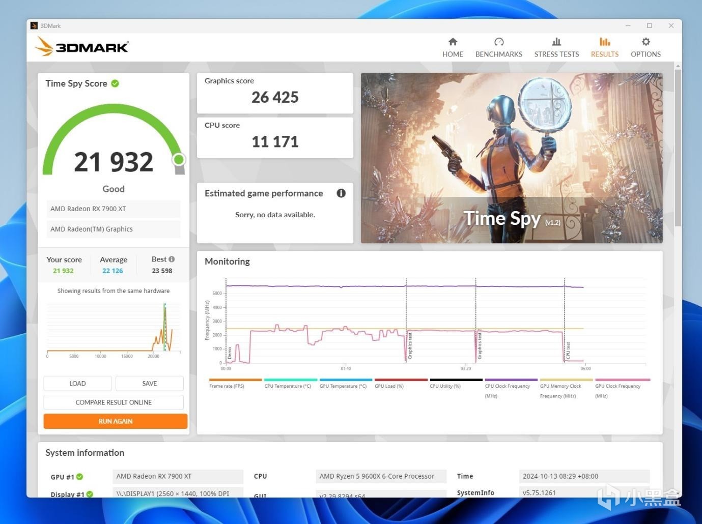 3DMARK Time Spy测试,超频前 CPU得分10572,超频后CPU得分11171。