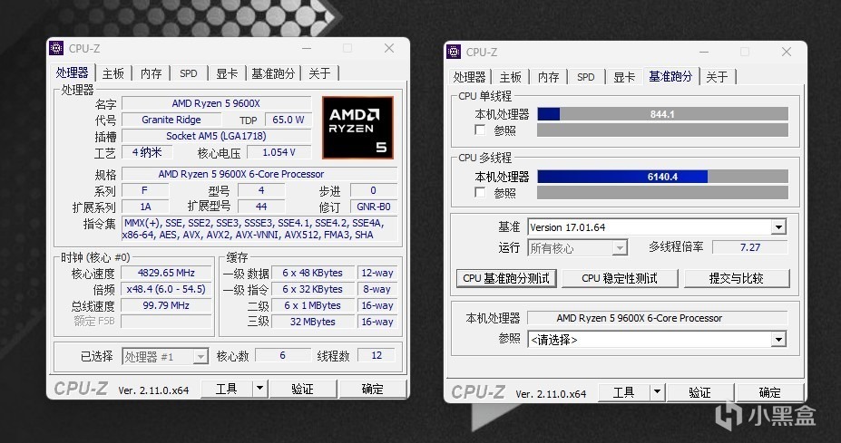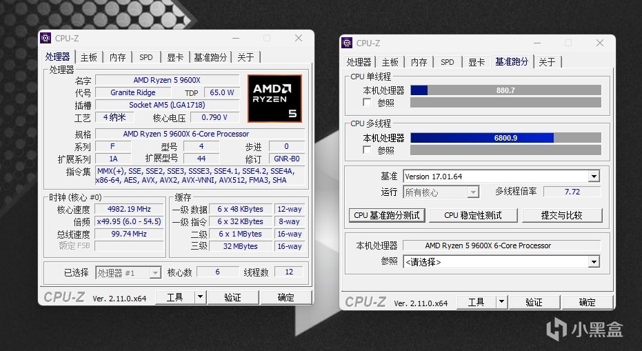 我们首先看下CPU-Z里的跑分,超频前单核844.1,多核6140.4,超频后单核880.8,多核6800.9。提升明显很多。