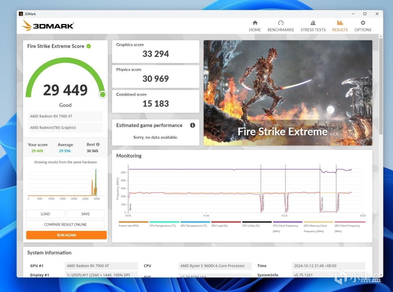 3DMARK Fire Strike Extreme,超频前物理得分30969,超频后物理得分33784。