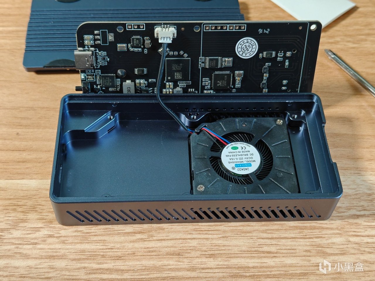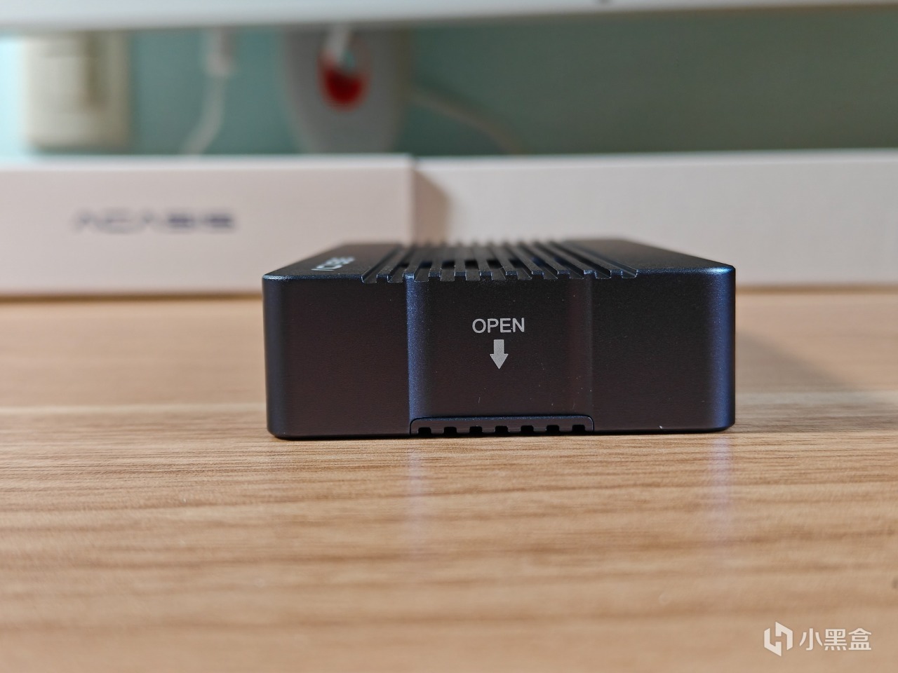 短边侧面,是TYPE-C接口,边上有个指示灯。一个按键开关,这个是用于开启和关闭风扇的。