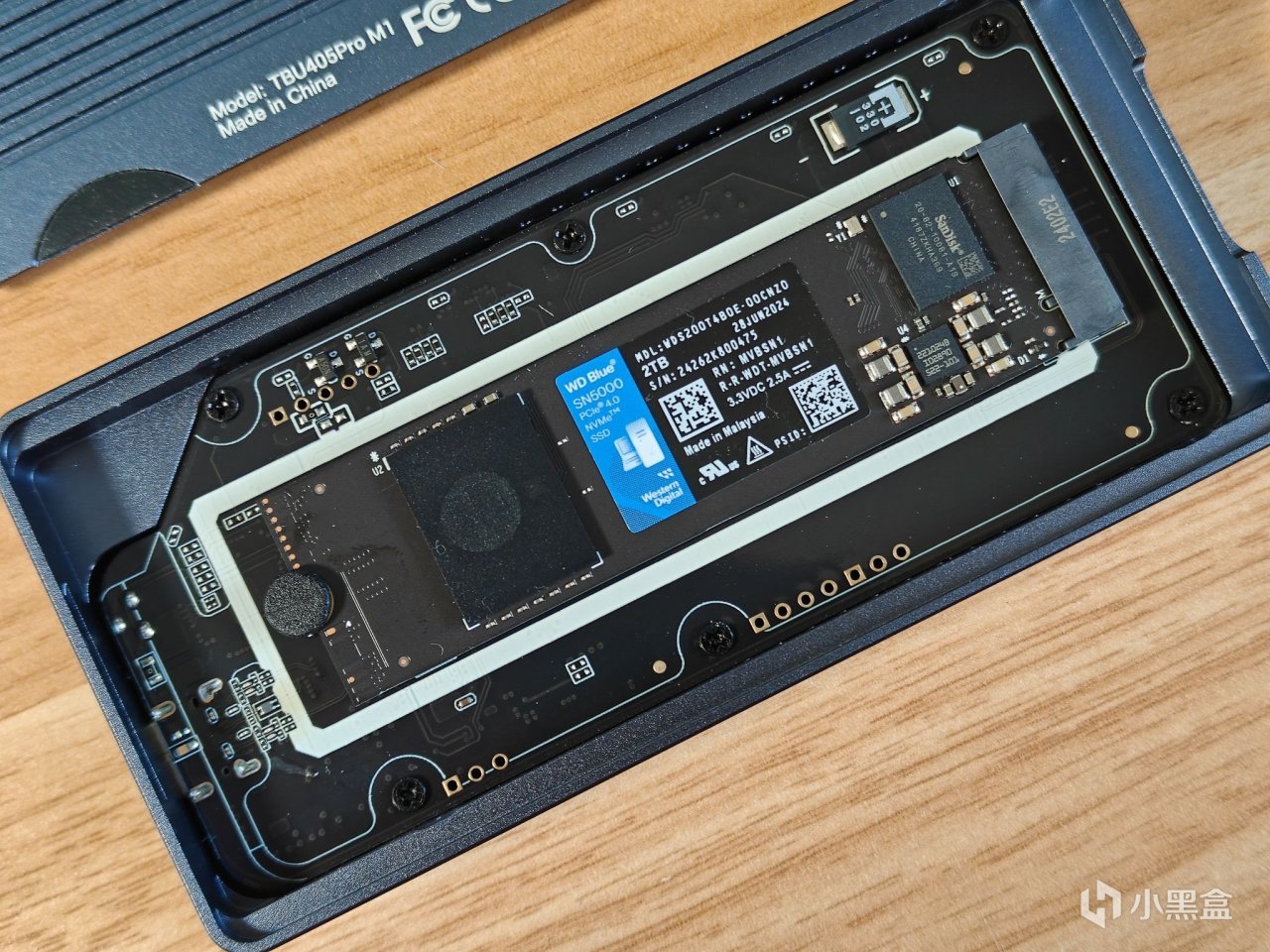 支持USB4.0的移动硬盘都很贵,自己购入硬盘盒DIY一个,是个非常好的方式。这里使用一款阿卡西斯的移动硬盘盒,支持USB4.0,40Gbps高速传输。