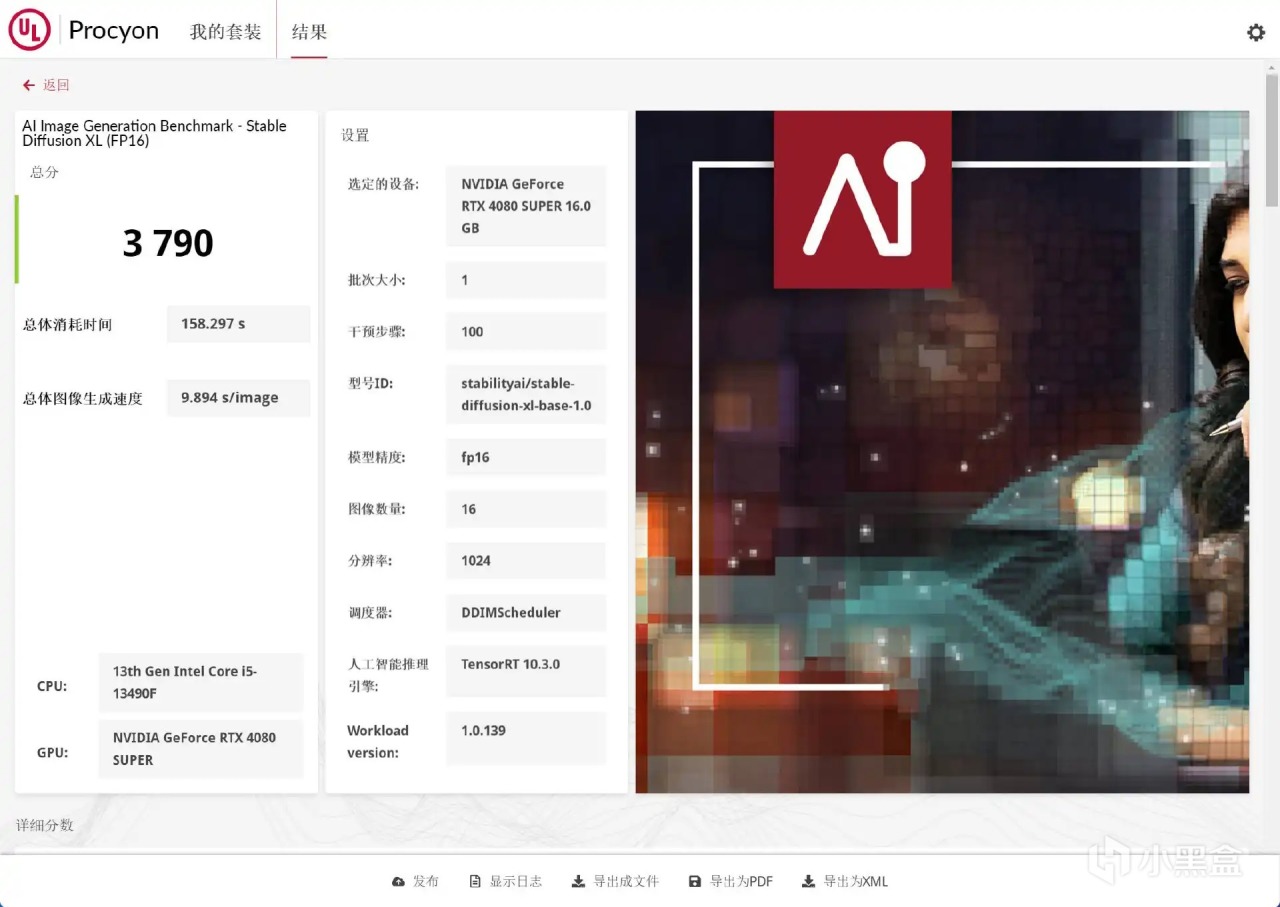 ▼AI Image Generation Benchmark(文生圖)則是針對高端獨顯的性能測試,運行時會利用幾種不同的 Stable Diffusion 圖像生成模型,通過創建 16 幅分辨率爲1024 * 1024的圖像,彙總效率並打分。本次測試得分 3790,