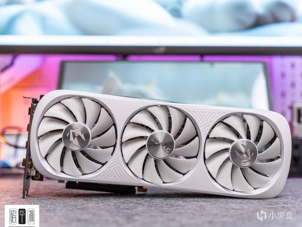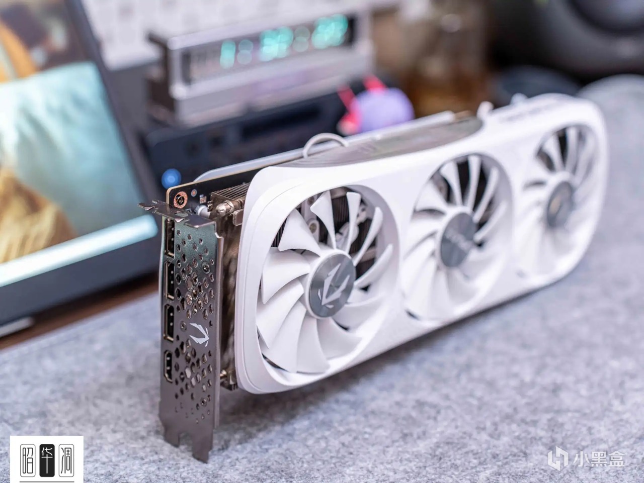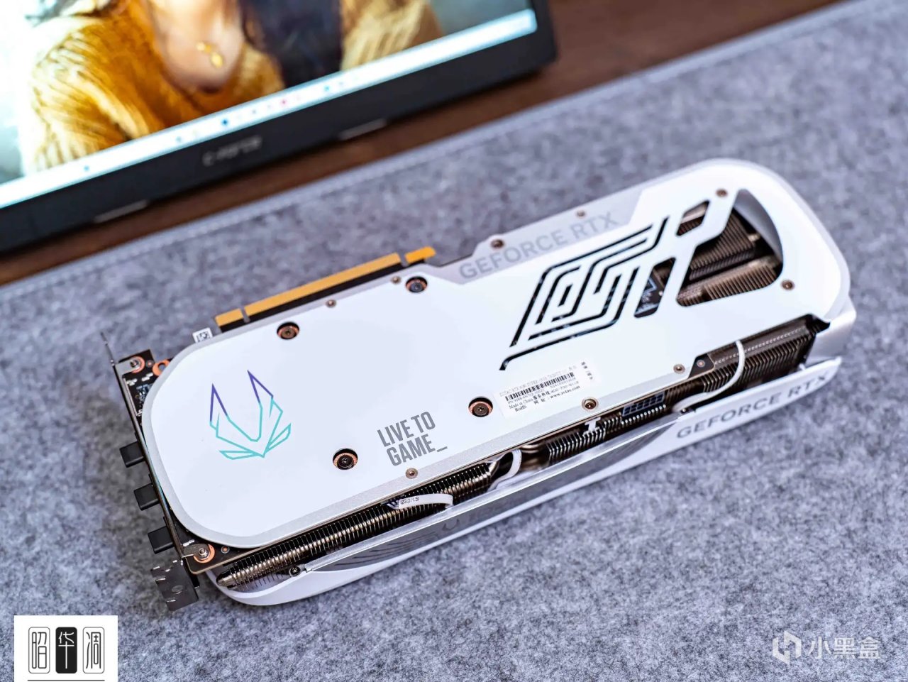▼作爲 40 系顯卡中最後發佈的 SUPER 成員,4080 SUPER 在硬件配置上搭載了“滿血版” AD103 核心,配備了 10240 個流處理器,並且維持了 256位 顯存位寬。顯卡的基礎時鐘頻率爲 2295MHz,但核心頻率提升到了 2565MHz。顯卡的背板採用白色合金材質,不僅增強了整體結構的穩固性,還爲PCB板提供了額外的保護。背板尾部的開窗設計,與前端風扇協同工作,有效提升了空氣流通,從而優化了散熱效果。