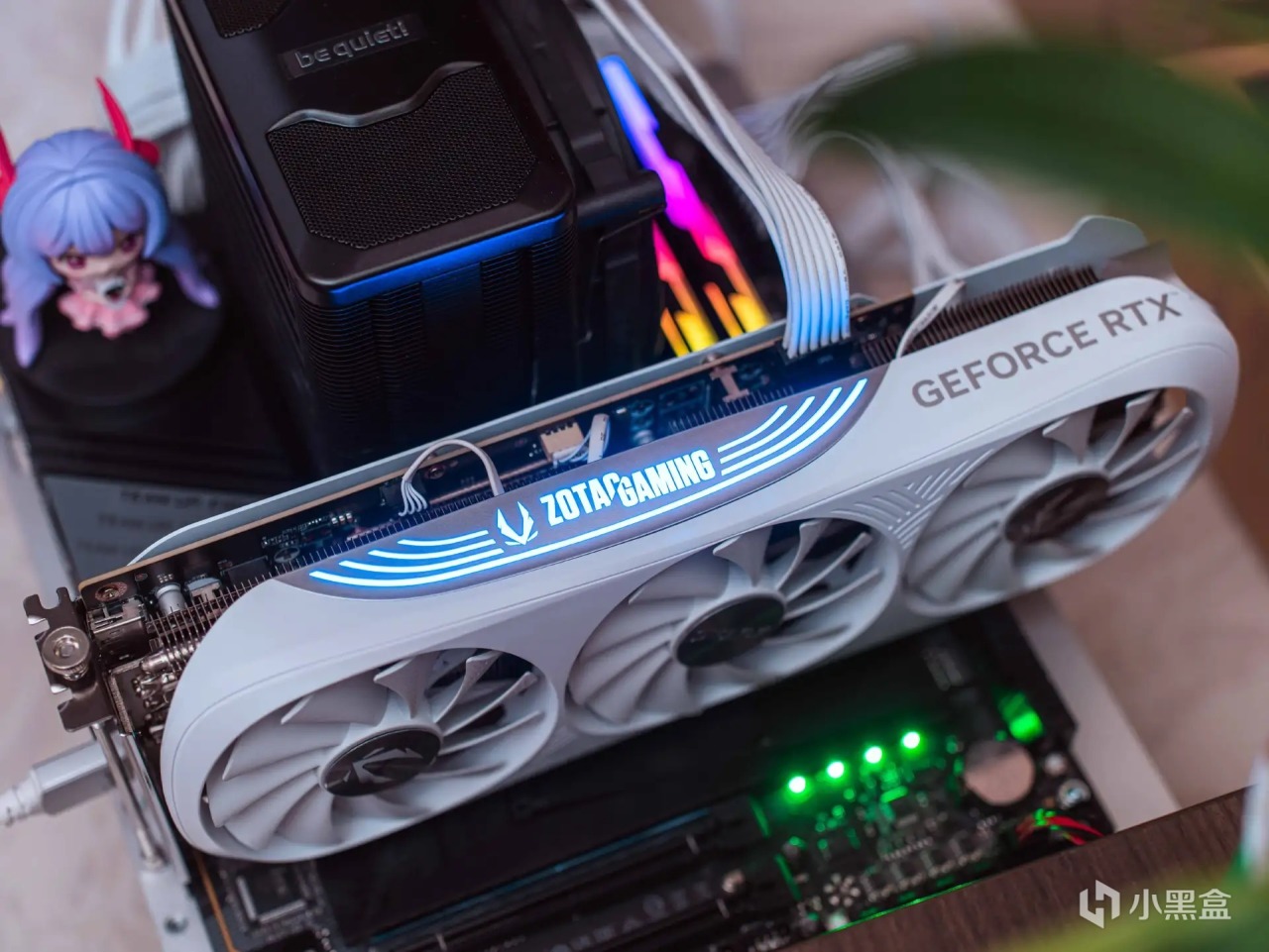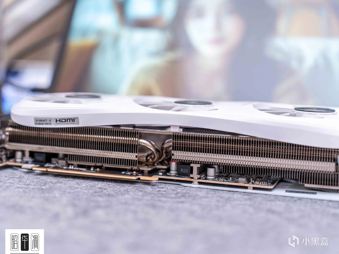▼顯卡內部配備了索泰自家研發的 IceStorm3.0 散熱系統,該系統由“仿生盾鱗2.0”三風扇、7 根 6mm 鍍鎳熱管以及增強型散熱模組組成。結合 11 + 2 相的電源設計,能夠有效地管理和降低顯卡在運行過程中產生的熱量。