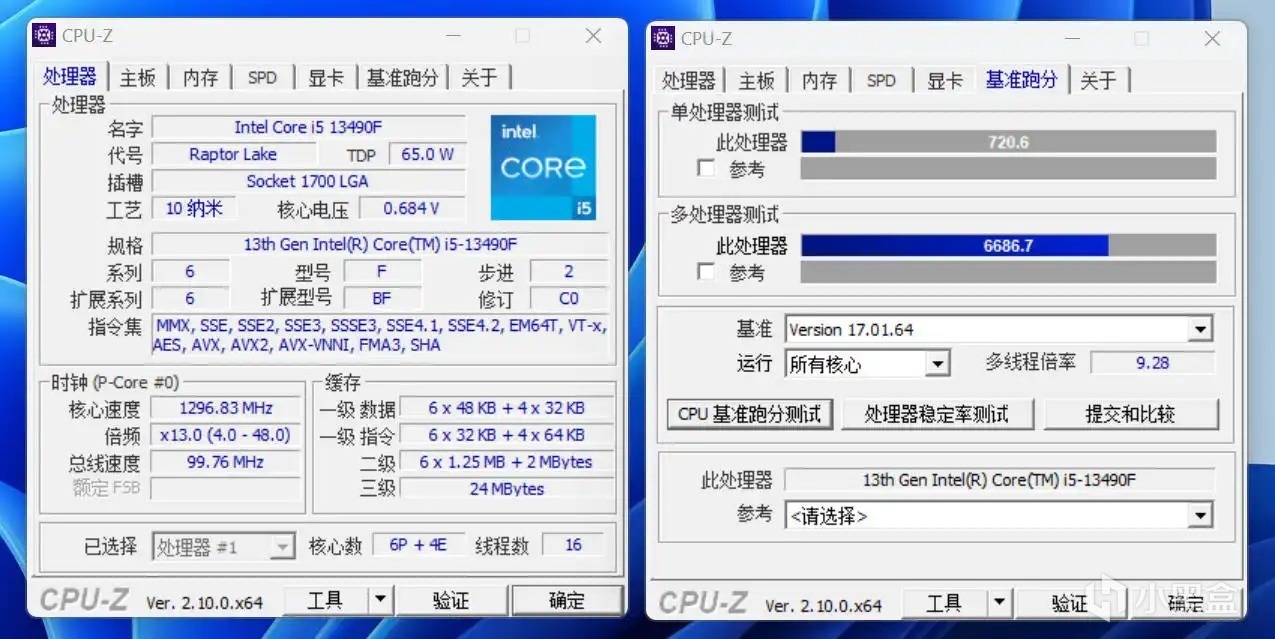 ▼專供中國市場的小黑盒版本首發是 I5 - 12490F,作爲該系列的第 二 款型號 13490F,最大的改變就是引入了大小核混合架構,6 顆性能核 + 4 顆能效核組成 10 核心16 線程,默認睿頻 4.8GHz,二級緩存 9.5MB、三級緩存 24MB,相比 13400F 頻率有 0.2GHz 提升,三緩提高了 4MB,理論來說更適合遊戲平臺。
