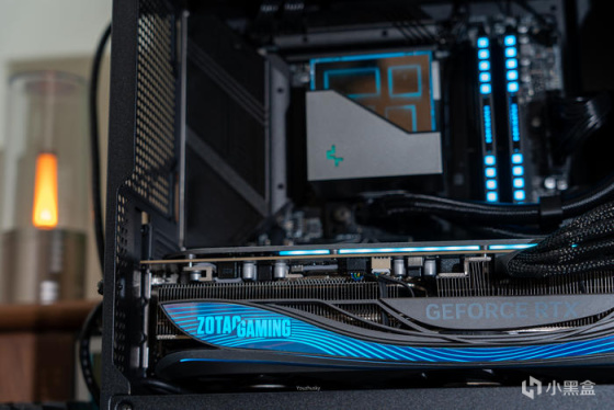 英偉達這一代Ada Lovelace 進入了NVIDIA DLSS3、第三代 RTX Cores 光線追蹤的遊戲新紀元,讓4K144Hz終於成爲了主流性能,同時其基於臺積電TSMC 4N製造工藝實現了接近上一代兩倍性能的飛躍,不過代價也是硬件規格提升的同時也讓散熱規模更加龐大了,這次使用的索泰4090 AMP升級的IceStorm3.0散熱系統則是達到了355.5mm x 165.8mm x 72.1mm的3.5槽大板磚規模和9根冰脈複合熱管和VC均熱板設計,當然4090 AMP還擁有24+4相SEP供電系統的設計,達到了16384的流處理器和384bit位寬的24G DDR6X顯存,並且核心頻率boost2580Mhz和具有450W功耗的12VHPWR新型接口