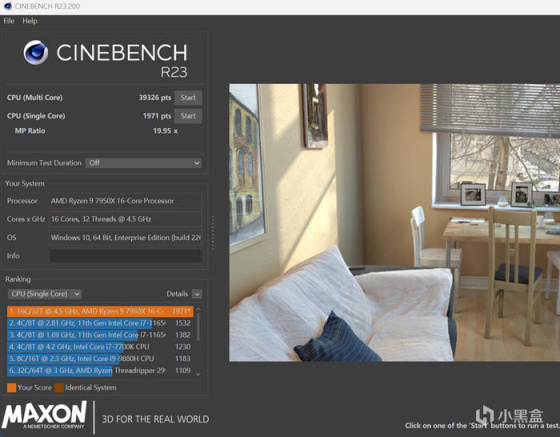CineBench R23 測試成績單核 1971,多核39326以下是其他的測試結果: