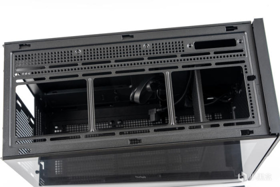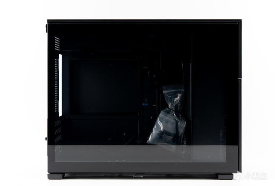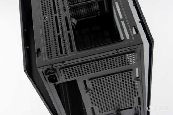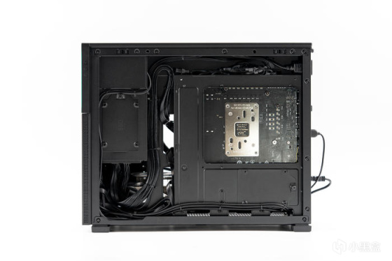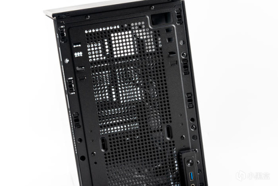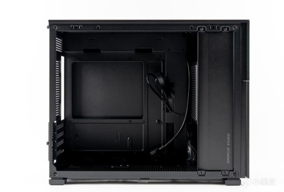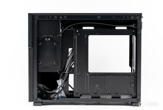 打開背板可以看到機箱走線基本從頂部和中間爲主,左邊和右邊各兼容一個2.5SSD位,電源倉底部還能安裝一個3.5HDD