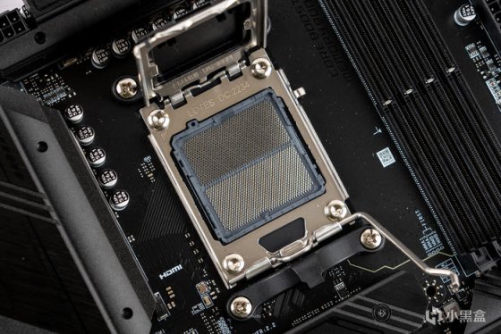 AM5插槽爲LOTES品牌,也終於不用擔心AM4那種拔蘿蔔連根拔起的恐懼了,這一代AM5是lga1718針腳,中間靠左的兩個缺口防呆安裝