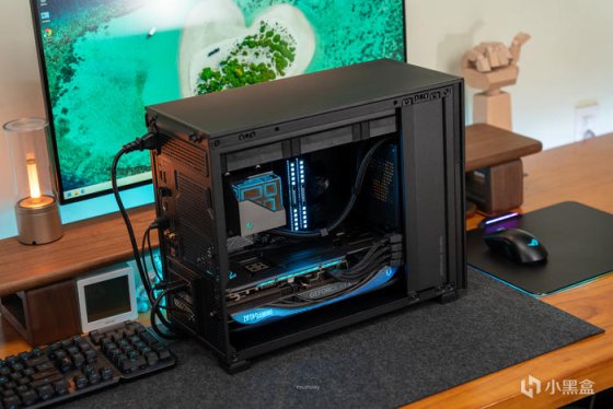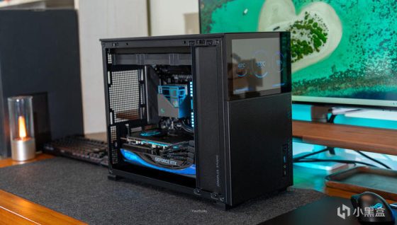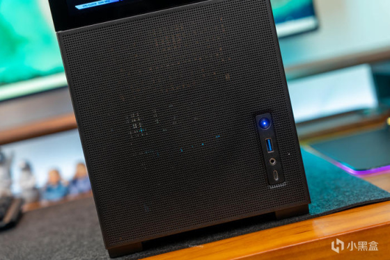 整機側面,這裏沒有使用副屏,而是機箱自帶的MESH上下面板
