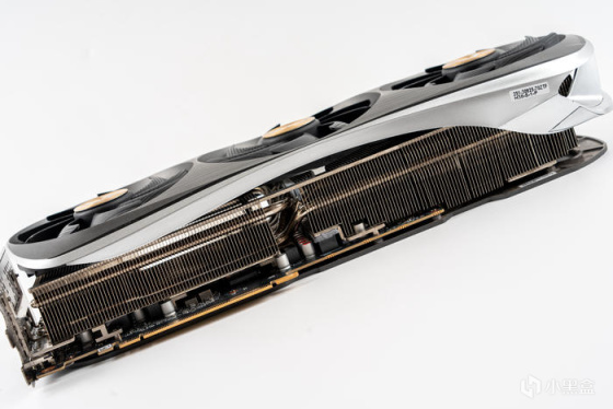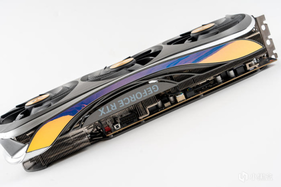 頂部的VRM散熱片也有更多的鋸齒狀促進散熱,雙8P的供電已經成爲了迫擊炮的標配,畢竟功耗、核心數量都是成正比的