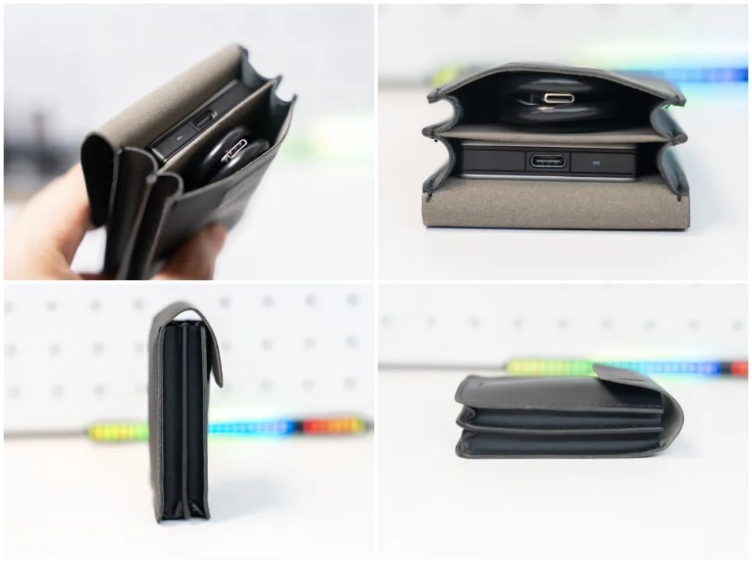 收纳还是双层的,可以将数据线和PSSD进行分区收纳,并且不会刮花移动固态硬盘的金属外壳。尺寸也很小巧,刚好可以放下PSSD及数据线,平时外出也可以直接放兜里。