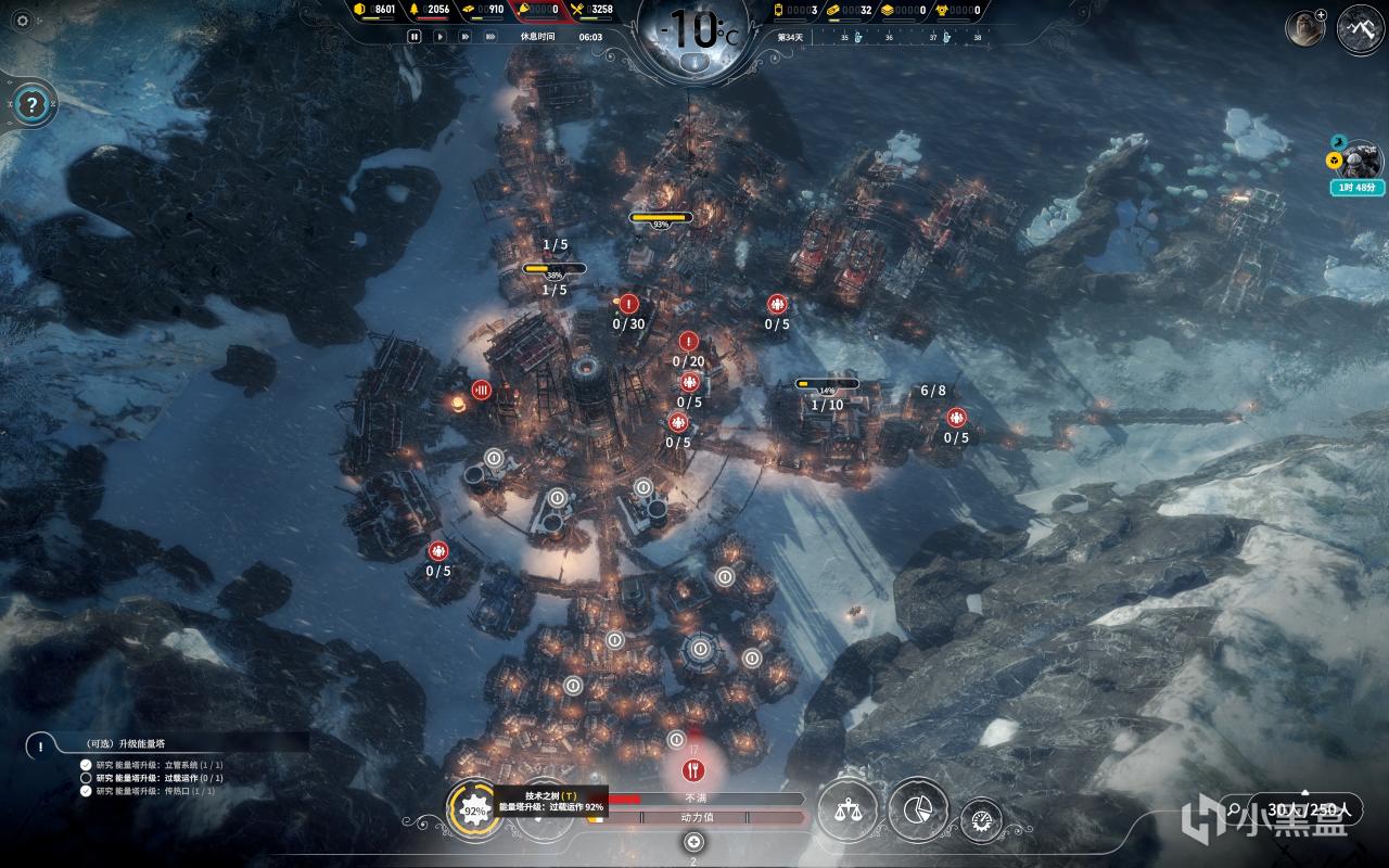 34天,建造完能量塔,所有科技研發完成