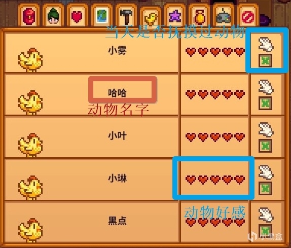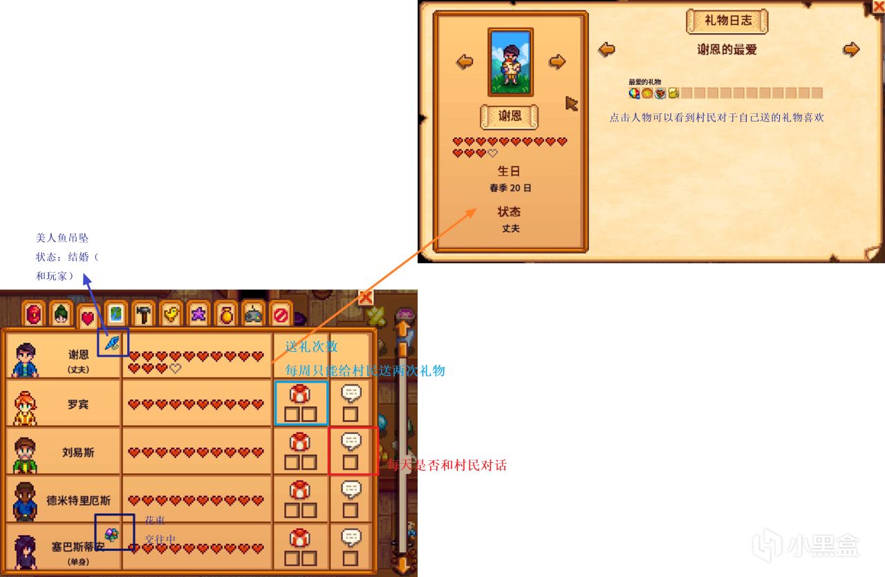 快速查阅与村民的好感度,每周送礼次数和对话。