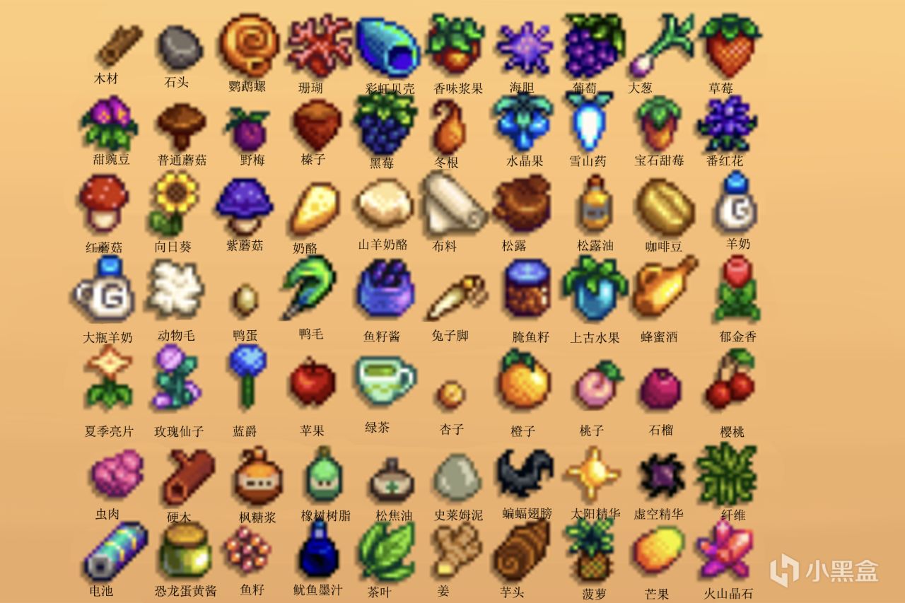 通过农场上的出货箱售卖过的物品的种类和数量。