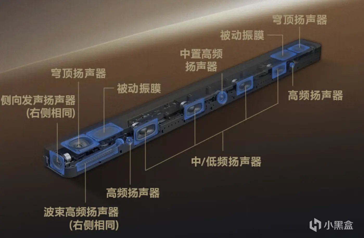 比較來看,A9000多了2個波束高頻揚聲器,4個低頻被動振膜。